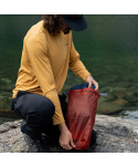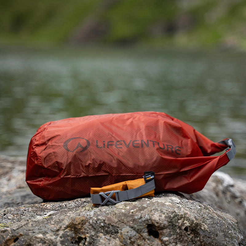 Voděodolný vak Lifeventure Ultralight Bag s rolovacím víkem je vyrobený z nylonové ripstop tkaniny Cordura® s jemností 30D. Mezi hlavní přednosti patří vysoká pevnost, maximální sbalitelnost a voděodolnost, která je zajištěna polyuretanovým (PU) zátěrem vnější vrstvy a podlepenými švy. Vak oceníte jak při vodáckých aktivitách, tak na treku v nepříznivém počasí, kdy budete vděční za suché věci v batohu.