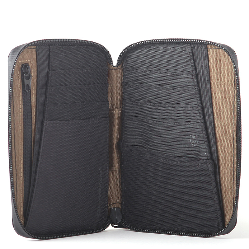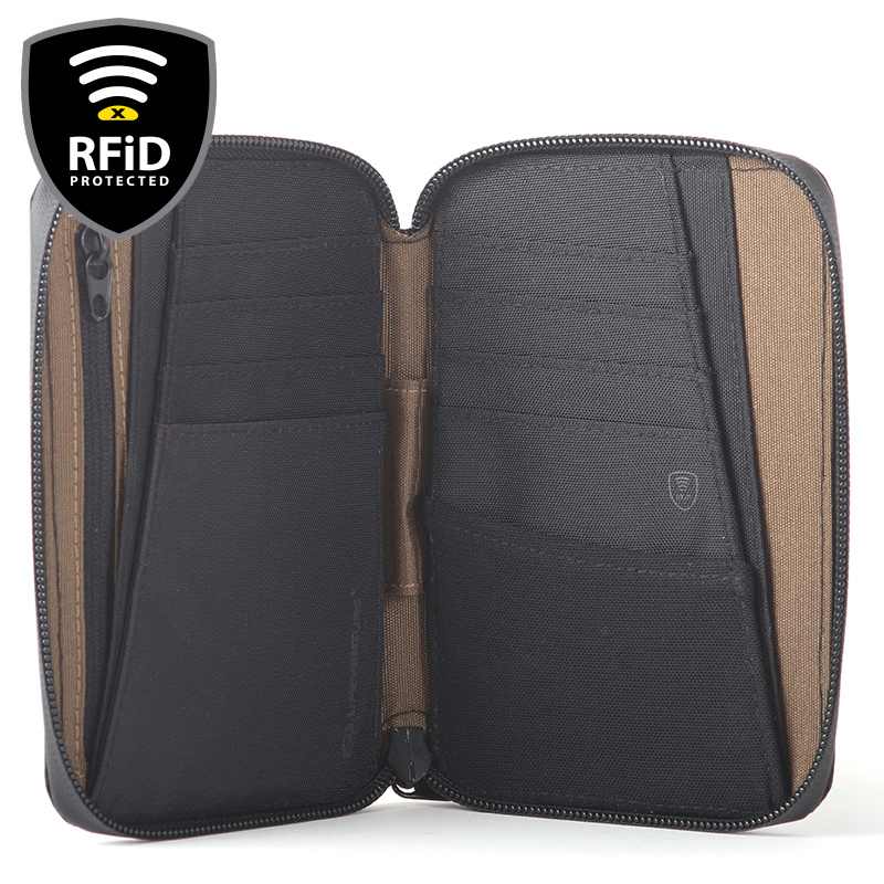 Praktické cestovní pouzdro na dokumenty a doklady, vyrobené z laminované tkaniny X-Pac® VX21 s RFiD ochranou. Voděodolná konstrukce s lícovou tkaninou o hrubosti 210 denier poskytuje ideální rovnováhu hmotnosti a odolnosti. Celkem můžete využít 8 vnitřních slotů pro karty, 5 vnitřních kapes, 1 vnitřní kapsu se zipem + jednu venkovní kapsu (bez RFiD ochrany). X-Pac Mini Travel Wallet bezpečně ochrání vaše citlivá data (průkazy, kreditní karty, ...) a další pro Vás důležitě dokumenty a doklady.