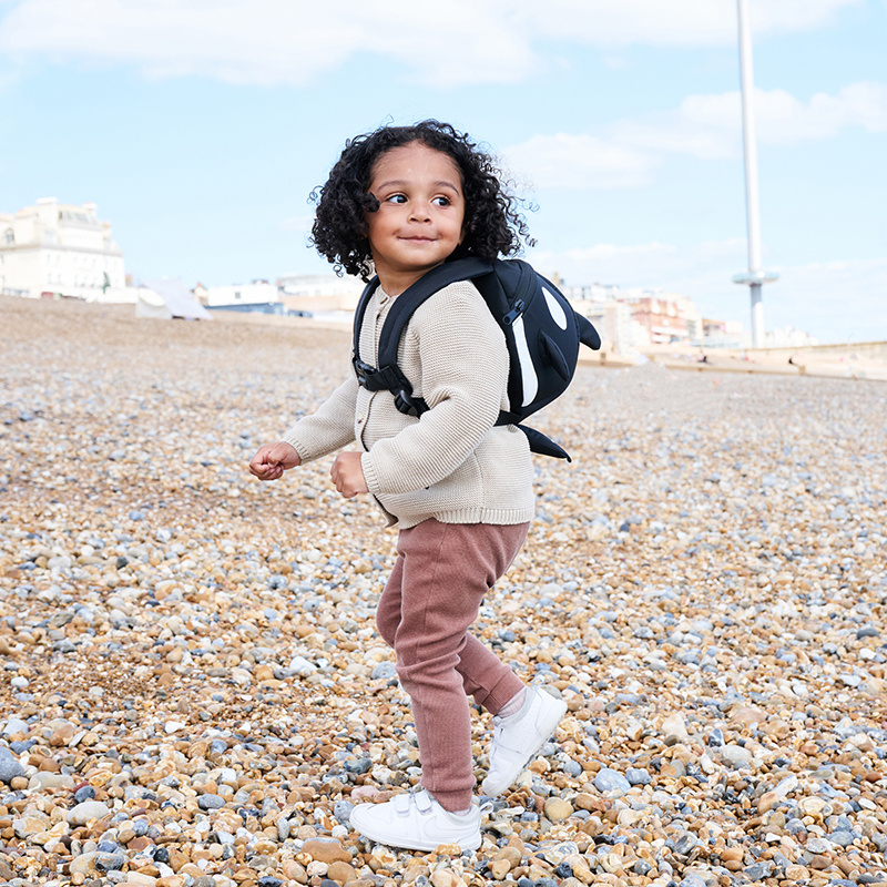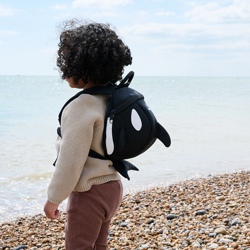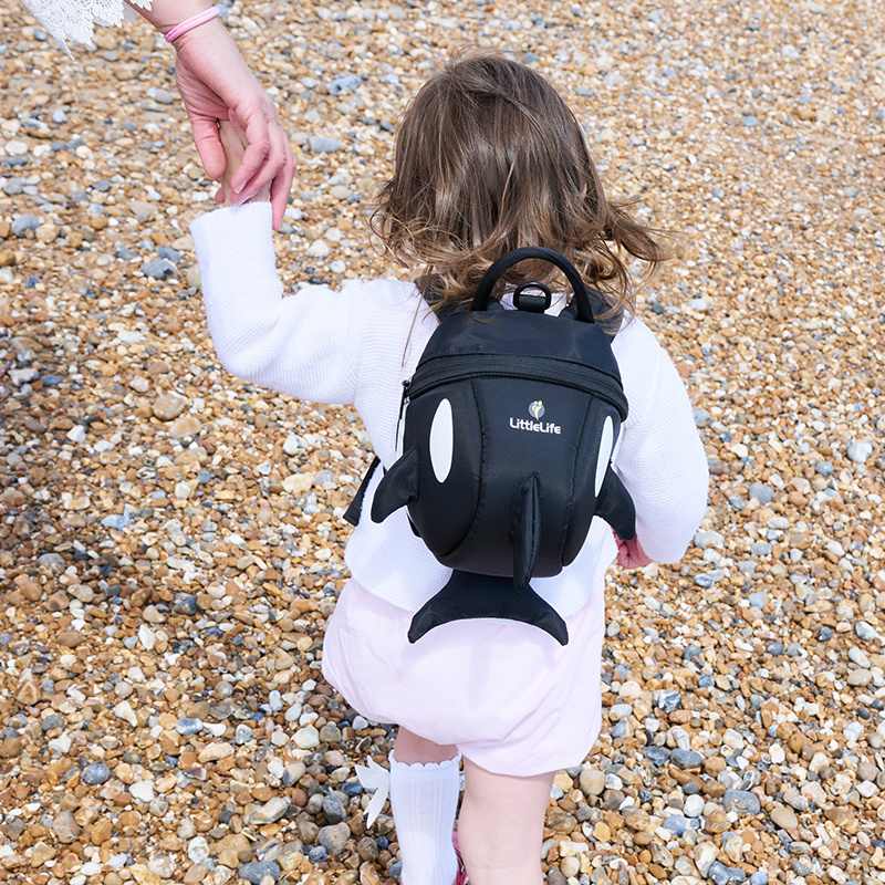 Dětský 2 litrový batůžek s motivem kosatky je určený pro děti od 1 až do 3 let. Do batůžku se vejde oblíbená hračka nebo pití na cestu. Důležitou součástí je bezpečnostní vodítko, které zajišťuje rodičům kontrolu dětí v rušných prostorách, ulicích, parku, a zároveň jim umožňuje svobodu, kterou potřebují k vybudování své vlastní důvěry.