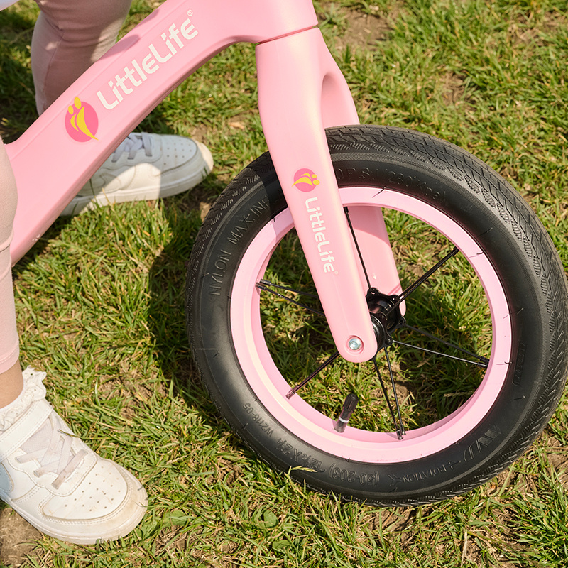 Balance Bike je dětské odrážecí kolo, které je skvělým společníkem na výlety vašich dětí a ideální pro učení jízdy na kole. Hlavní předností je rám z lehkého a odolného nylonu a gumové pneumatiky, které zajišťují dokonalý komfort ticha.