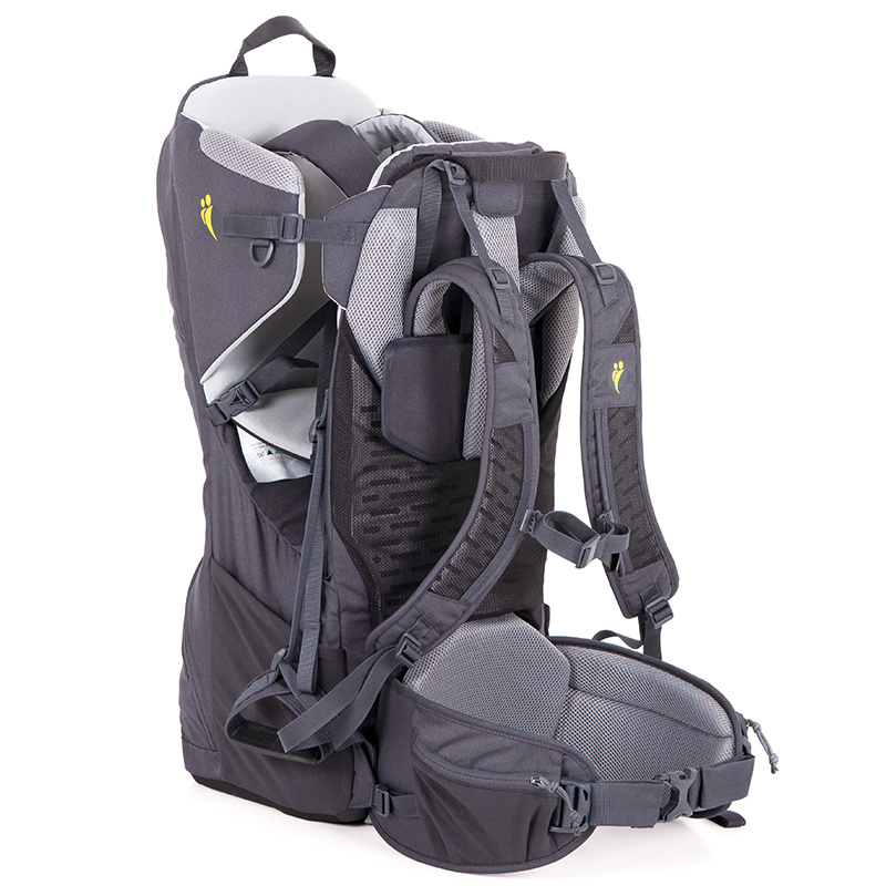 Pathfinder Child Carrier je lehká dětská sedačka navržená na delší výlety. Nabízí dostatečný úložný prostor jednak ve spodní části, a to hlavně kvůli stabilitě a celkovému rozložení váhy, ale pro potřebné doplňky můžete využít i horní kapsu na zip nebo boční síťky. V základu u nosítka LittleLife Pathfinder najdete stříšku proti Slunci, třmeny pro nohy a zpětné zrcátku pro kontrolu dítěte.