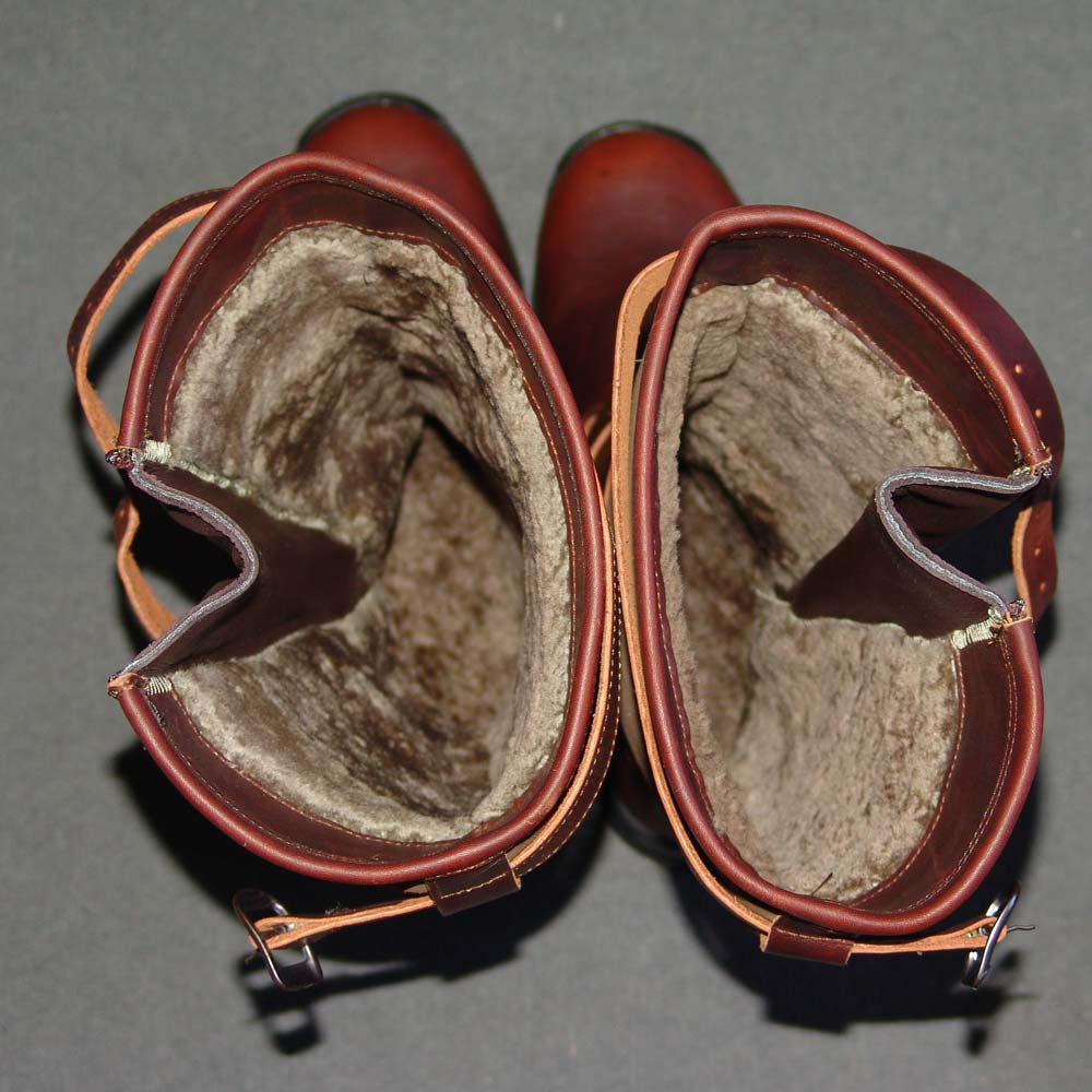 Klasická lovecká obuv holeňového typu, se zdrhovadlem na vnější straně a beránkem uvnitř.