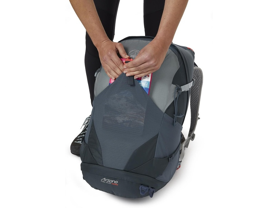 Hory vždycky nějak překvapí. A najednou budeš potřebovat nepromokavou bundu, GPSku nebo trekové hole. Proto má tento batoh od Lowe Alpine dvě oddělené komory, spoustu šikovných kapes a snadný systém upnutí holí – aby se ti pokaždé rychle dostalo do rukou to, co právě potřebuješ. Zádům se pak během náročných výstupů dostane permanentního osvěžení čerstvým vzduchem – dnes už legendární nosný systém AirZone totiž průběžně větrá. A kdyby tě zaskočila divoká bouřka nebo tě snad na stezce doprovázel věčný déšť, integrovaná pláštěnka udrží obsah batohu v suchu.
