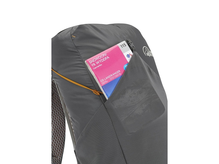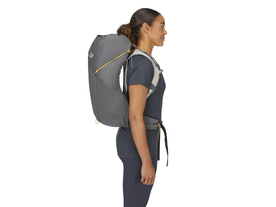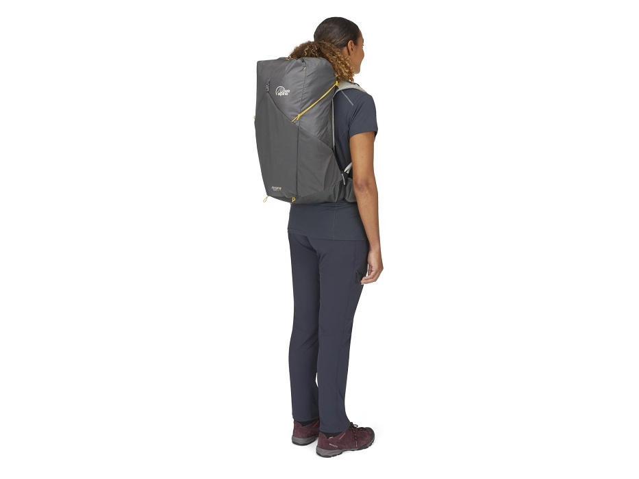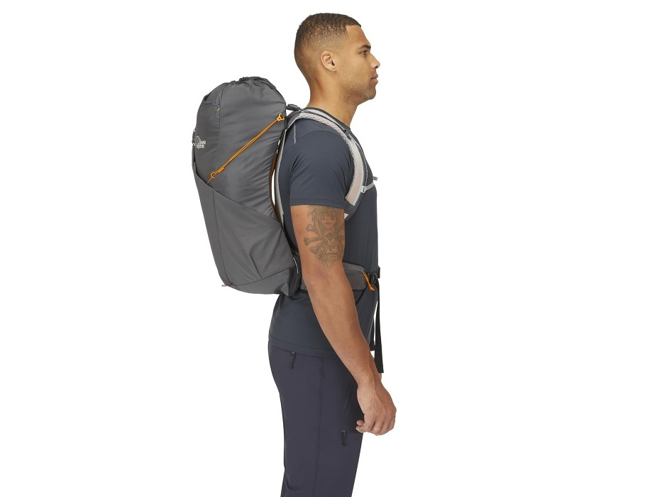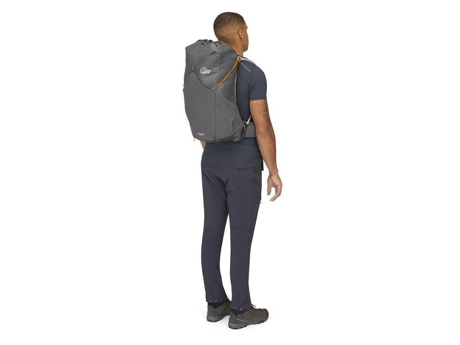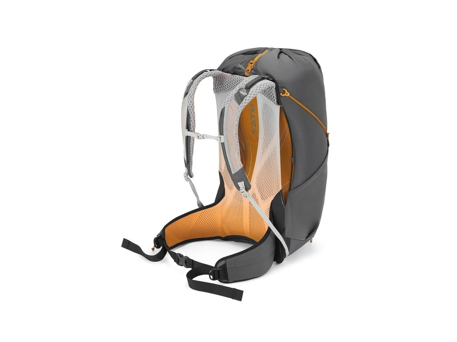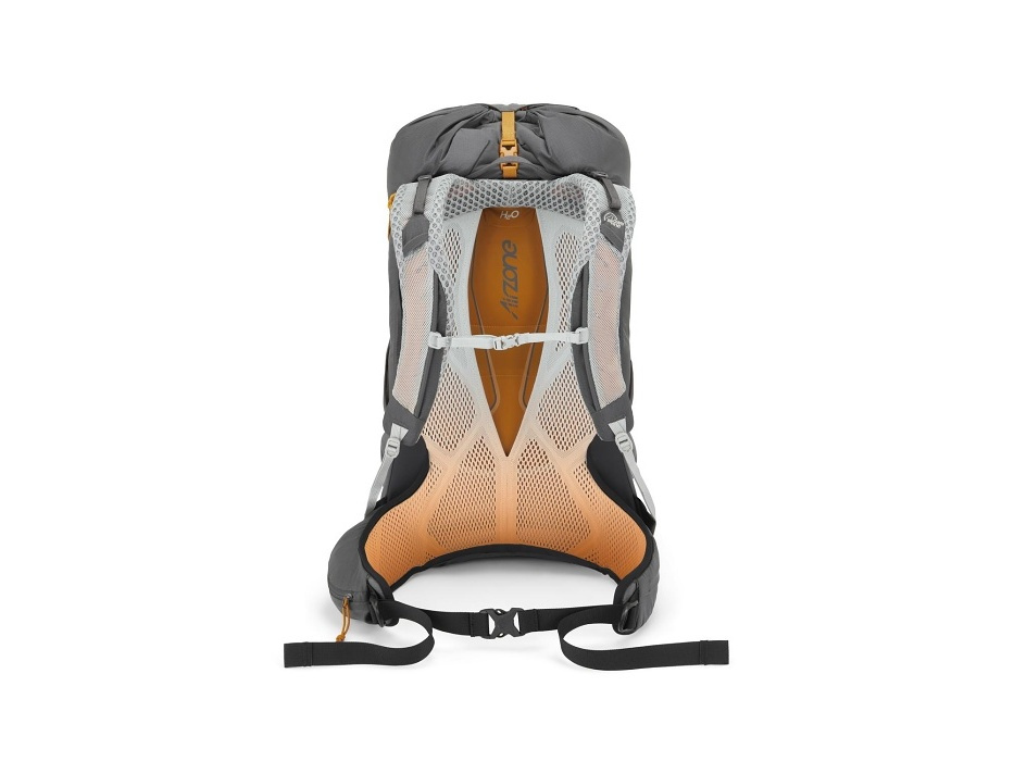 Čím nižší hmotnost, tím rychleji bude stezka ubíhat pod nohama a vrcholový kříž získávat reálné obrysy. Tento minimalistický batoh navrhli v Lowe Alpine v duchu fast and light. A aby i horké letní dny na cestě byly příjemné, opatřili ho vzdušným zádovým systémem AirZone. Pletená konstrukce se hezky usadí na zádech, přizpůsobí se pohybu a podpoří proudění vzduchu okolo těla i únik přebytečného tepla. Každý detail pak ubírá další cenné gramy z celkové hmotnosti batohu – od ultralehkých kompresních popruhů pro stabilizaci nákladu po rychlý vstup využívající stahovací šňůrku. Mokré věci se dají odložit do přední strečové kapsy a do těch bočních se zase vlezou láhve s vodou. A kdyby ani to k hydrataci nestačilo, využít se dá i vnitřní kapsa na 3litrový hydrovak.