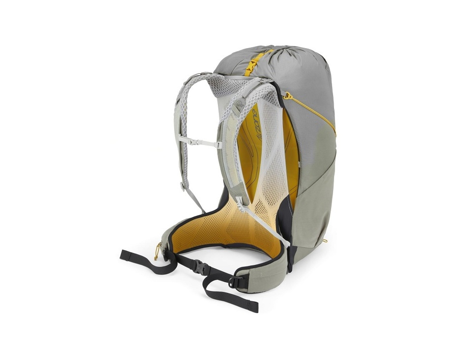 Čím nižší hmotnost, tím rychleji bude stezka ubíhat pod nohama a vrcholový kříž získávat reálné obrysy. Tento minimalistický batoh navrhli v Lowe Alpine v duchu fast and light. A aby i horké letní dny na cestě byly příjemné, opatřili ho vzdušným zádovým systémem AirZone. Pletená konstrukce se hezky usadí na zádech, přizpůsobí se pohybu a podpoří proudění vzduchu okolo těla i únik přebytečného tepla. Každý detail pak ubírá další cenné gramy z celkové hmotnosti batohu – od ultralehkých kompresních popruhů pro stabilizaci nákladu po rychlý vstup využívající stahovací šňůrku. Mokré věci se dají odložit do přední strečové kapsy a do těch bočních se zase vlezou láhve s vodou. A kdyby ani to k hydrataci nestačilo, využít se dá i vnitřní kapsa na 3litrový hydrovak.