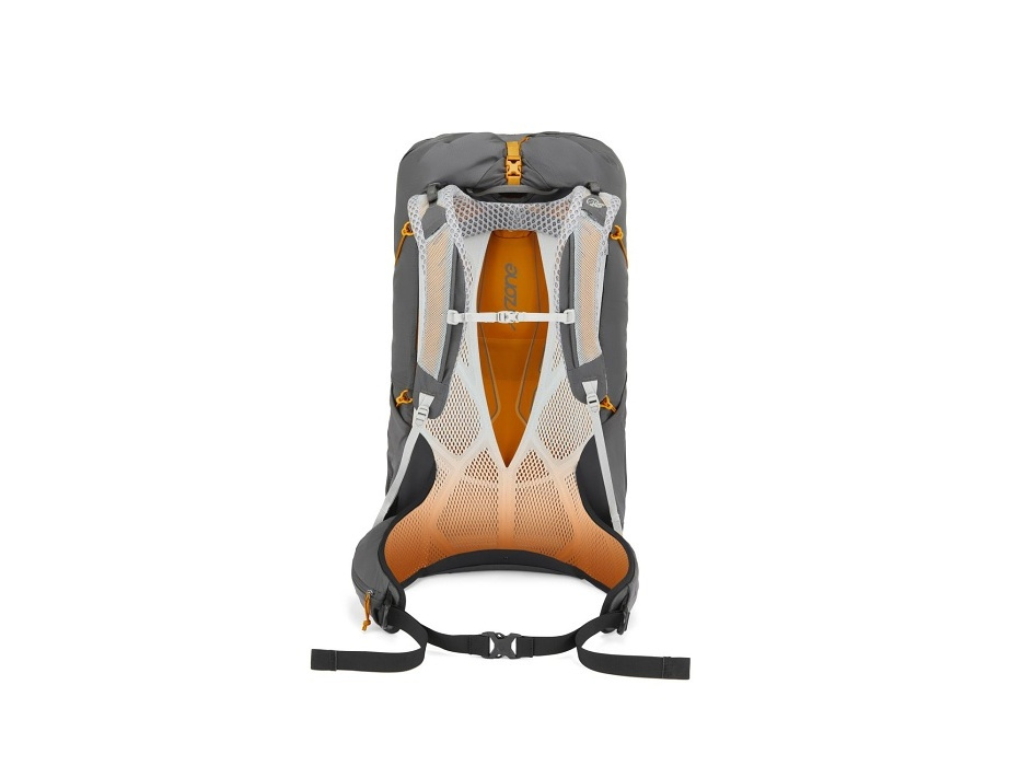 Čím nižší hmotnost, tím rychleji bude stezka ubíhat pod nohama a vrcholový kříž získávat reálné obrysy. Tento minimalistický batoh navrhli v Lowe Alpine v duchu fast and light. A aby i horké letní dny na cestě byly příjemné, opatřili ho vzdušným zádovým systémem AirZone. Pletená konstrukce se hezky usadí na zádech, přizpůsobí se pohybu a podpoří proudění vzduchu okolo těla i únik přebytečného tepla. Každý detail pak ubírá další cenné gramy z celkové hmotnosti batohu – od ultralehkých kompresních popruhů pro stabilizaci nákladu po rychlý vstup využívající stahovací šňůrku. Mokré věci se dají odložit do přední strečové kapsy a do těch bočních se zase vlezou láhve s vodou. A kdyby ani to k hydrataci nestačilo, využít se dá i vnitřní kapsa na 3litrový hydrovak.