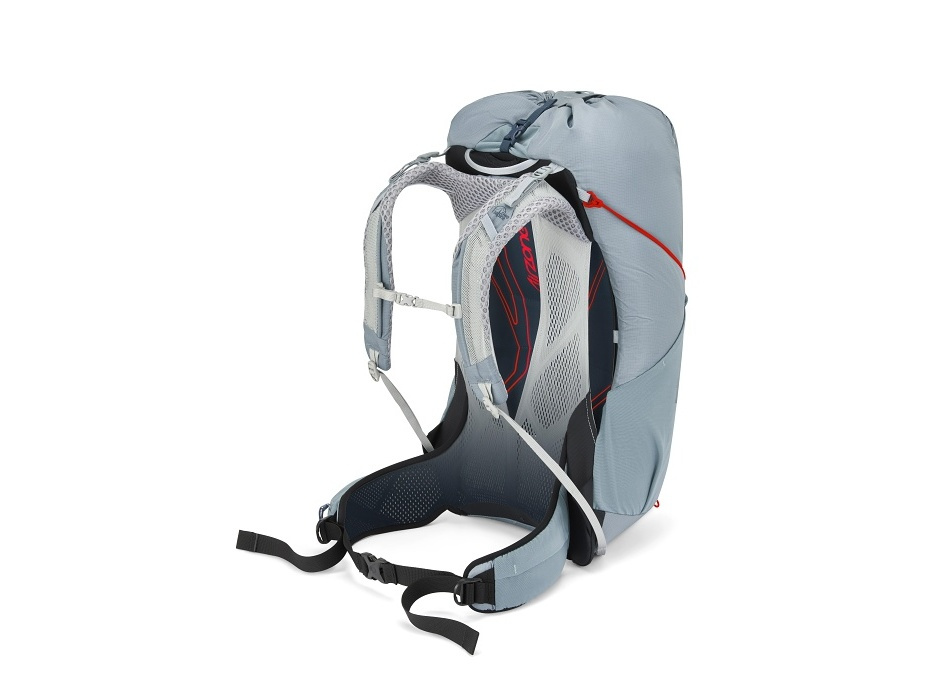 Čím nižší hmotnost, tím rychleji bude stezka ubíhat pod nohama a vrcholový kříž získávat reálné obrysy. Tento minimalistický dámský batoh navrhli v Lowe Alpine v duchu fast and light. A aby i horké letní dny na cestě byly příjemné, opatřili ho vzdušným zádovým systémem AirZone. Pletená konstrukce se hezky usadí na zádech, přizpůsobí se pohybu a podpoří proudění vzduchu okolo těla i únik přebytečného tepla. Každý detail pak ubírá další cenné gramy z celkové hmotnosti batohu – od ultralehkých kompresních popruhů pro stabilizaci nákladu po rychlý vstup využívající stahovací šňůrku. Mokré věci se dají odložit do přední strečové kapsy a do těch bočních se zase vlezou láhve s vodou. A kdyby ani to k hydrataci nestačilo, využít se dá i vnitřní kapsa na 3litrový hydrovak.