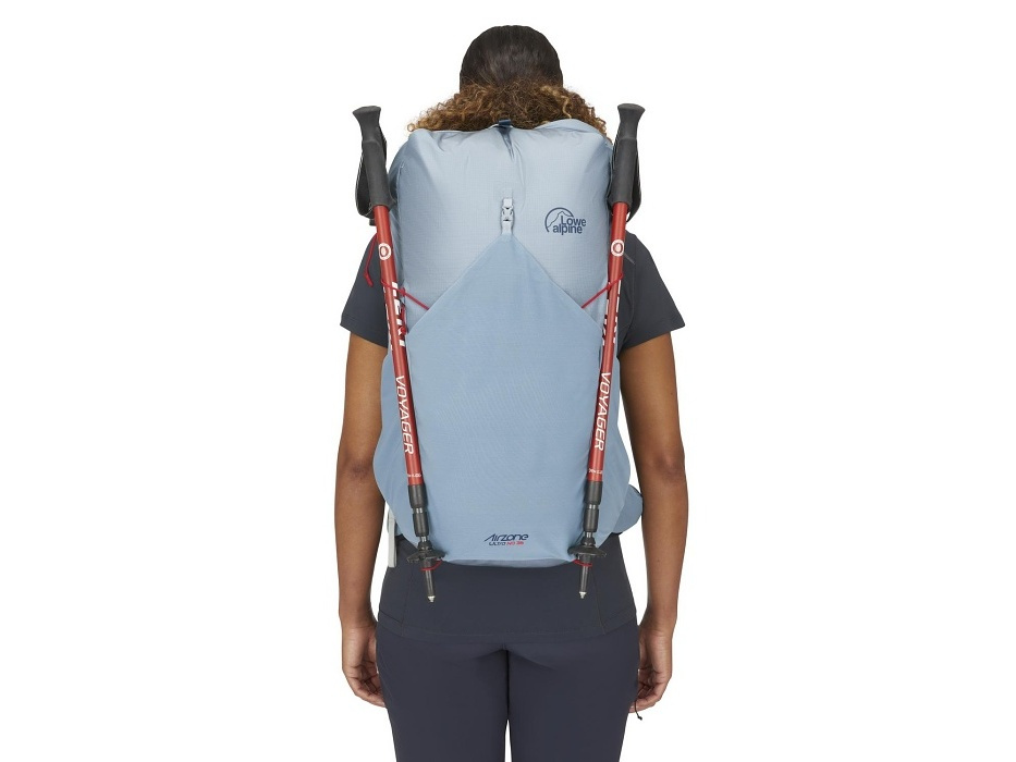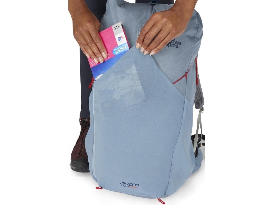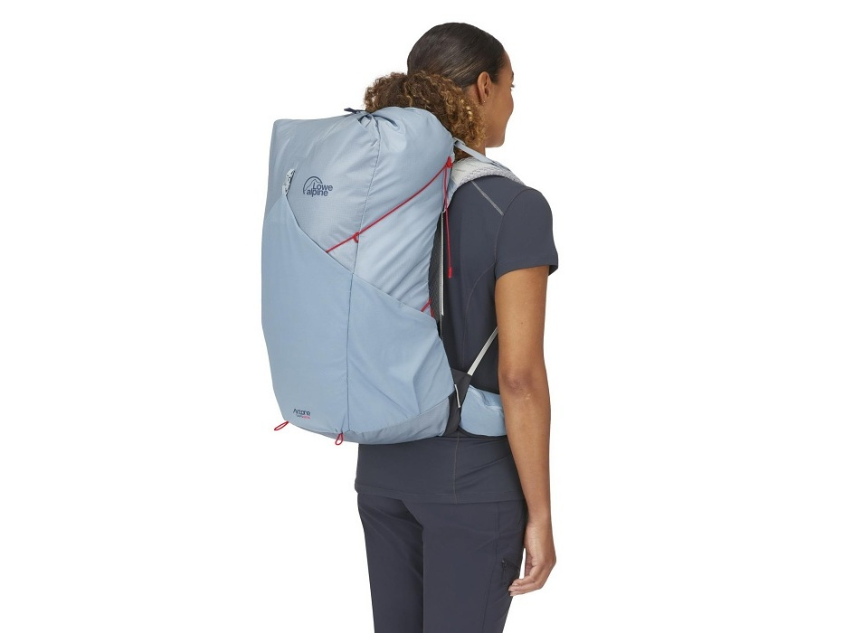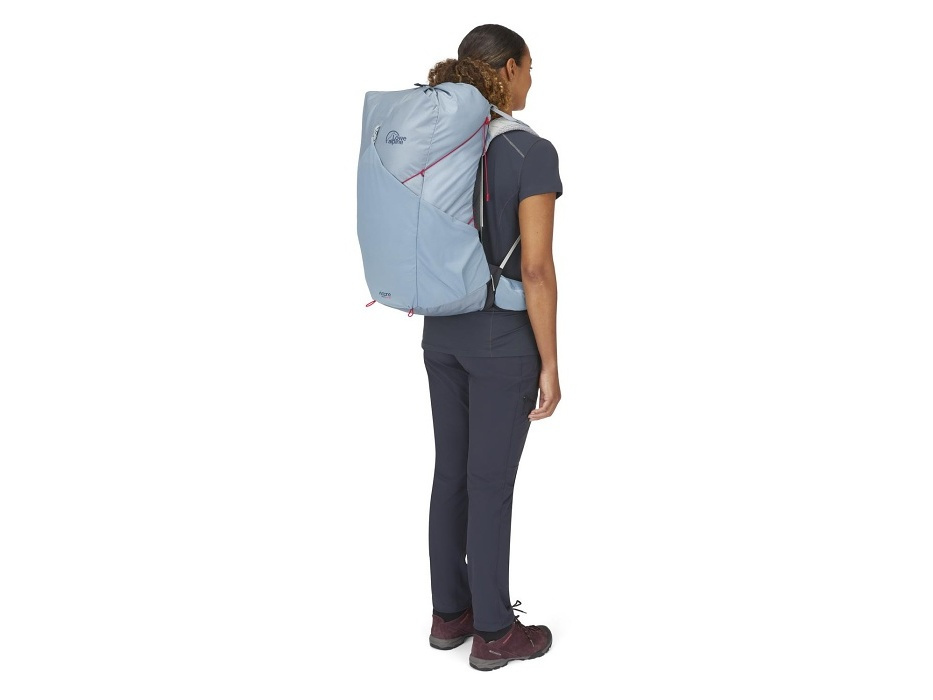 Čím nižší hmotnost, tím rychleji bude stezka ubíhat pod nohama a vrcholový kříž získávat reálné obrysy. Tento minimalistický dámský batoh navrhli v Lowe Alpine v duchu fast and light. A aby i horké letní dny na cestě byly příjemné, opatřili ho vzdušným zádovým systémem AirZone. Pletená konstrukce se hezky usadí na zádech, přizpůsobí se pohybu a podpoří proudění vzduchu okolo těla i únik přebytečného tepla. Každý detail pak ubírá další cenné gramy z celkové hmotnosti batohu – od ultralehkých kompresních popruhů pro stabilizaci nákladu po rychlý vstup využívající stahovací šňůrku. Mokré věci se dají odložit do přední strečové kapsy a do těch bočních se zase vlezou láhve s vodou. A kdyby ani to k hydrataci nestačilo, využít se dá i vnitřní kapsa na 3litrový hydrovak.