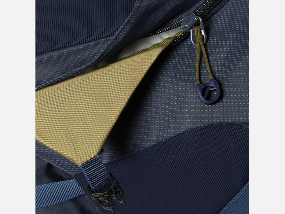 Celý svůj přechodný domov si ponesete rozdělený ve dvou komorách a spoustě menších kapes - ve víku, na bederním popruhu nebo v té šikovné pružné kapse na čele batohu. A když se do vás pustí vítr, předním vstupem vytáhnete bundu z batohu natotata.