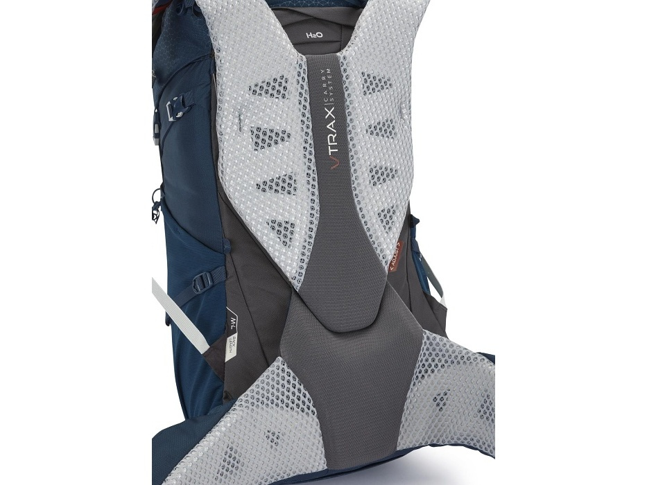 V-TRAX™ je nosný systém s nastavitelnou délkou zádového panelu pomocí suchého zipu. Společně s podpůrným bederním pásem zajišťuje plný kontakt se zády a vynikající stabilitu.