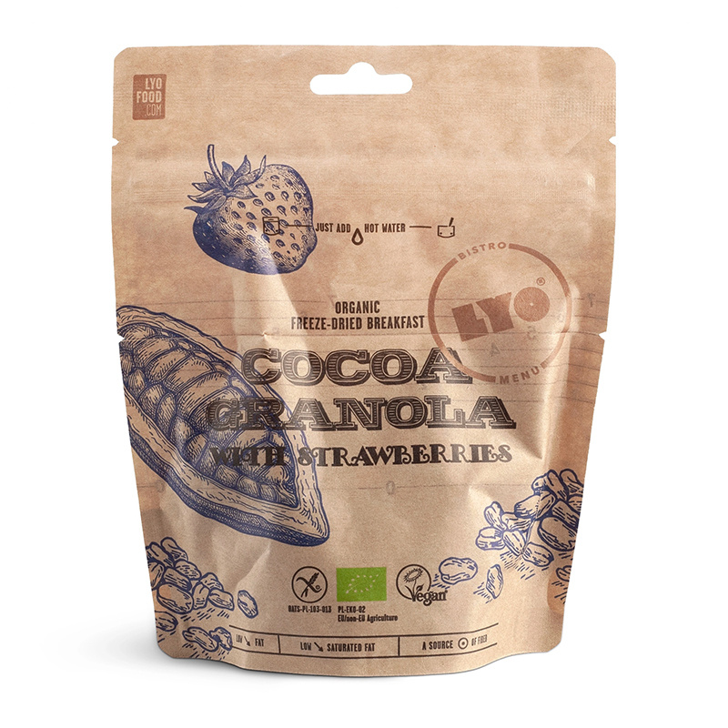 Bezlepková ovesná granola, která rozbuší srdce milovníků sladkých snídaní. Granola, vytvořená americkým zastáncem zdravého životního stylu v druhé polovině devatenáctého století, se stala skutečnou celebritou mezi snacky. Správně! Naše verze BISTRO Menu mísí oves s neodolatelným duetem kakaa a jahod posypaných agávovým sirupem. Chutná to stejně dobře, jak to zní. Žádné výmluvy zůstat v posteli!