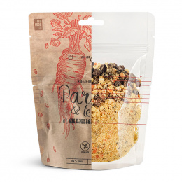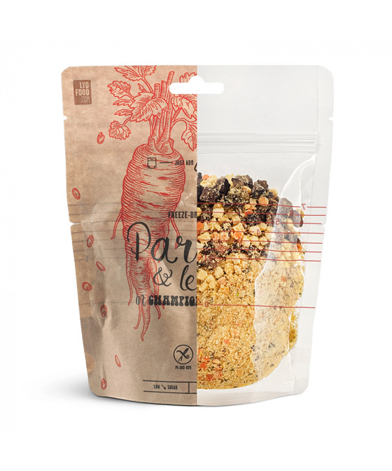 Veganská pochoutka bez lepku a laktózy! Představte si pastinák, červenou čočku a petržel podávané s jáhly a namočené v krémové houbové omáčce, vše ochucené kurkumou, křenem a pepřem. Plné chuti a vůně. Připraveno za 10 minut. Pastinák a čočka v žampionové omáčce je ideálním pokrmem pro zaneprázdněné gurmány, kteří ocení vysoce kvalitní jídlo.