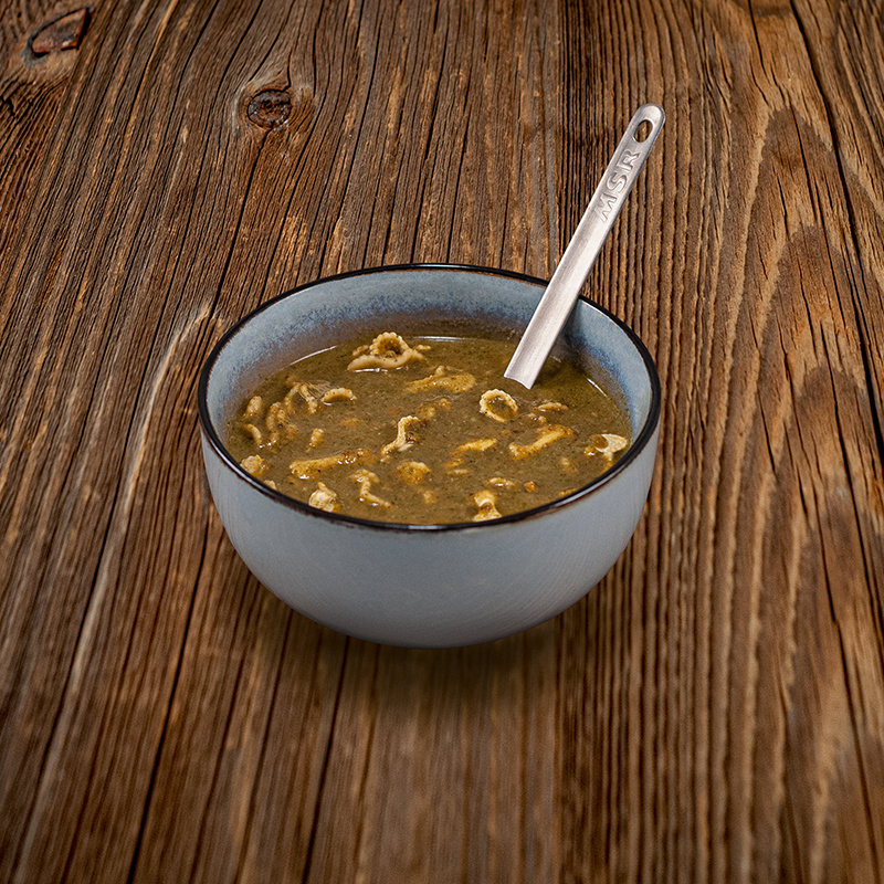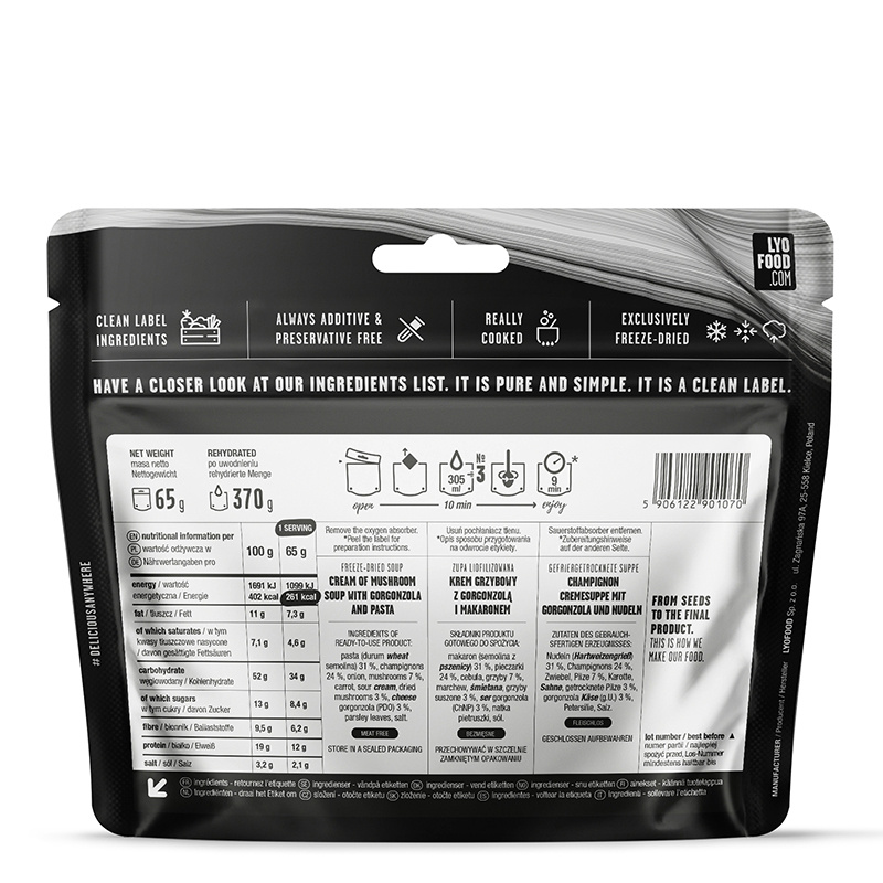 Představte si louku obklopenou stromy při ranním východu Slunce. Jeho paprsky se odrážejí v kapkách vody na trávě a vzduch voní probouzejícím se lesem po dešti. Vynaložili jsme veškeré úsilí, abychom zajistili, že to musí být právě to, co vás napadne, když si vychutnáváte naši houbovou polévku. Krémová jemná chuť doplněná lahodným tónem sýru Gorgonzola vás okouzlí. Nemohli jsme odolat přidání těstovin pro obohacení výsledné textury, ale také proto, že houby a těstoviny k sobě prostě patří.