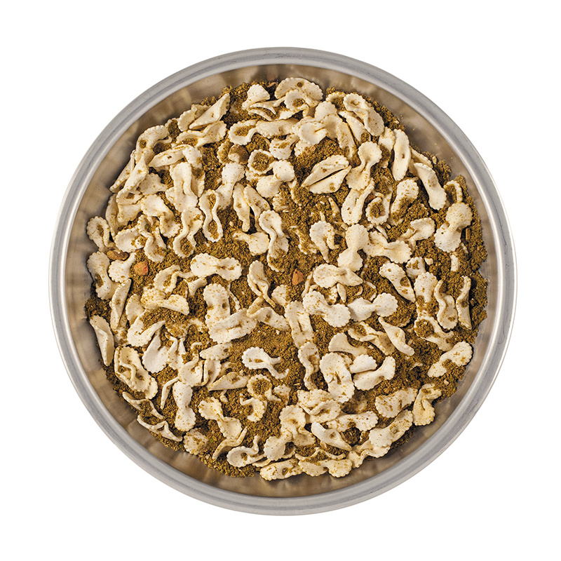V balení nejsou žádné umělé přísady, žádné přidané cukry, žádný palmový olej a žádné konzervační látky. Jídlo je vyrobeno ze 100% přírodních surovin. Doba spotřeby jsou cca 4 roky.