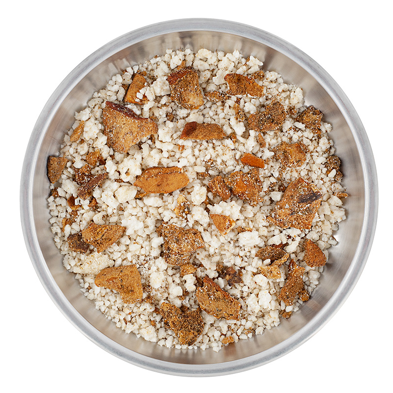 V balení nejsou žádné umělé přísady, žádné přidané cukry, žádný palmový olej a žádné konzervační látky. Jídlo je vyrobeno ze 100% přírodních surovin.