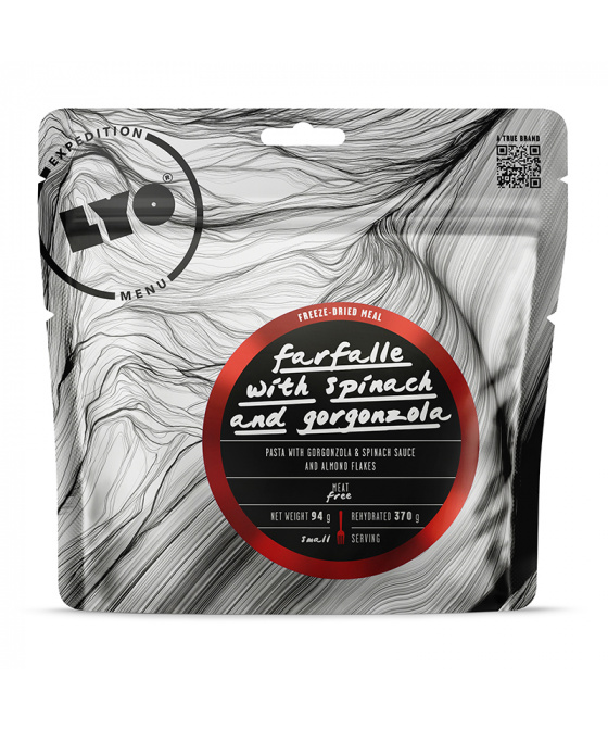 Farfalle, farfalloni, farfalline… to všechno znamená to samé - motýli, menší nebo větší! Tento milovaný druh těstovin je oblíben pro svůj jemný povrch a veselý tvar, který kombinuje tlustý střed s tenčími křidélky. Říká se, že díky rozmanitosti textur jsou farfalle obzvláště vhodné pro smetanových omáček a my nemohli jsme jinak než souhlasit. Představili jsme si je v celkem klasickém italském doprovodu se špenátem a sýrem Gorgonzola navíc ozdobené mandlovými lupínky. Zdá se, že jsme to uvařili správně, protože LYO Farfalle od prvního dne uchvacují chuťové buňky outdoorových nadšenců lačných po dobrodružství.