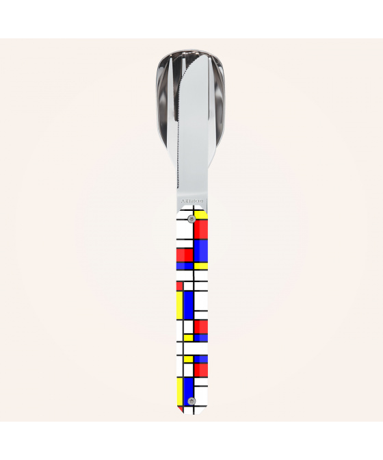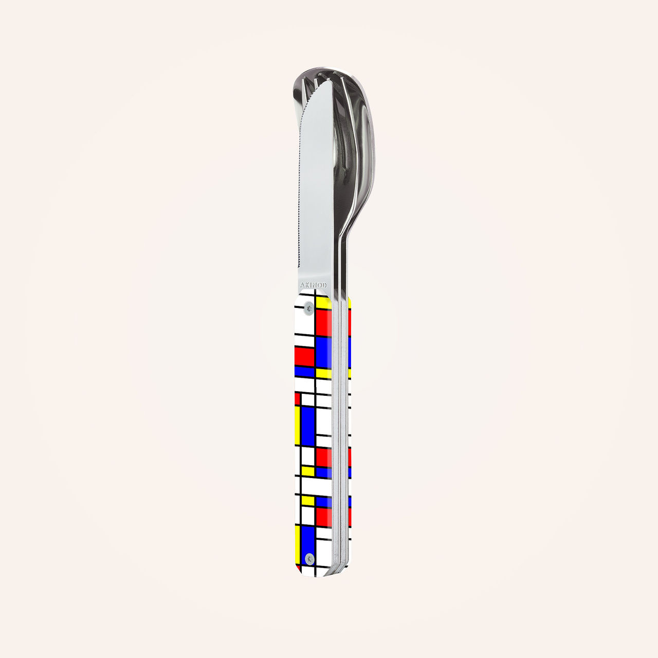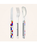 Cestovatelský magnetický příborový set v moderním designu s odolnou polymerovou rukojetí.