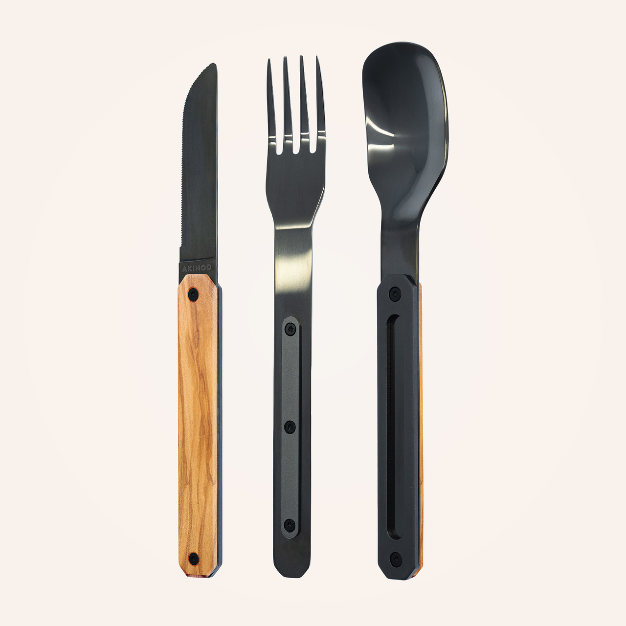 Cestovatelský příborový set v moderním designu s rukojetí z olivového dřeva.Více