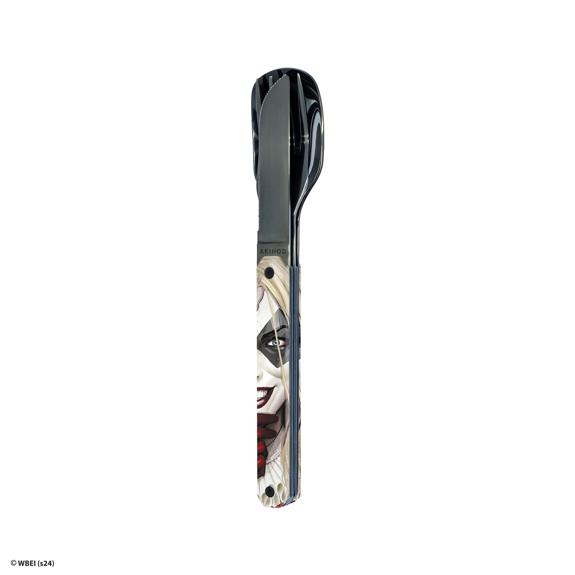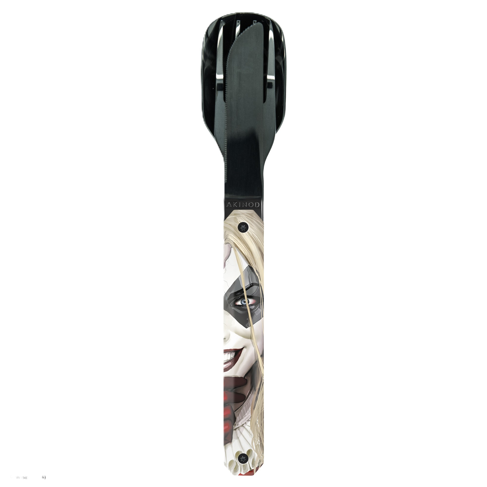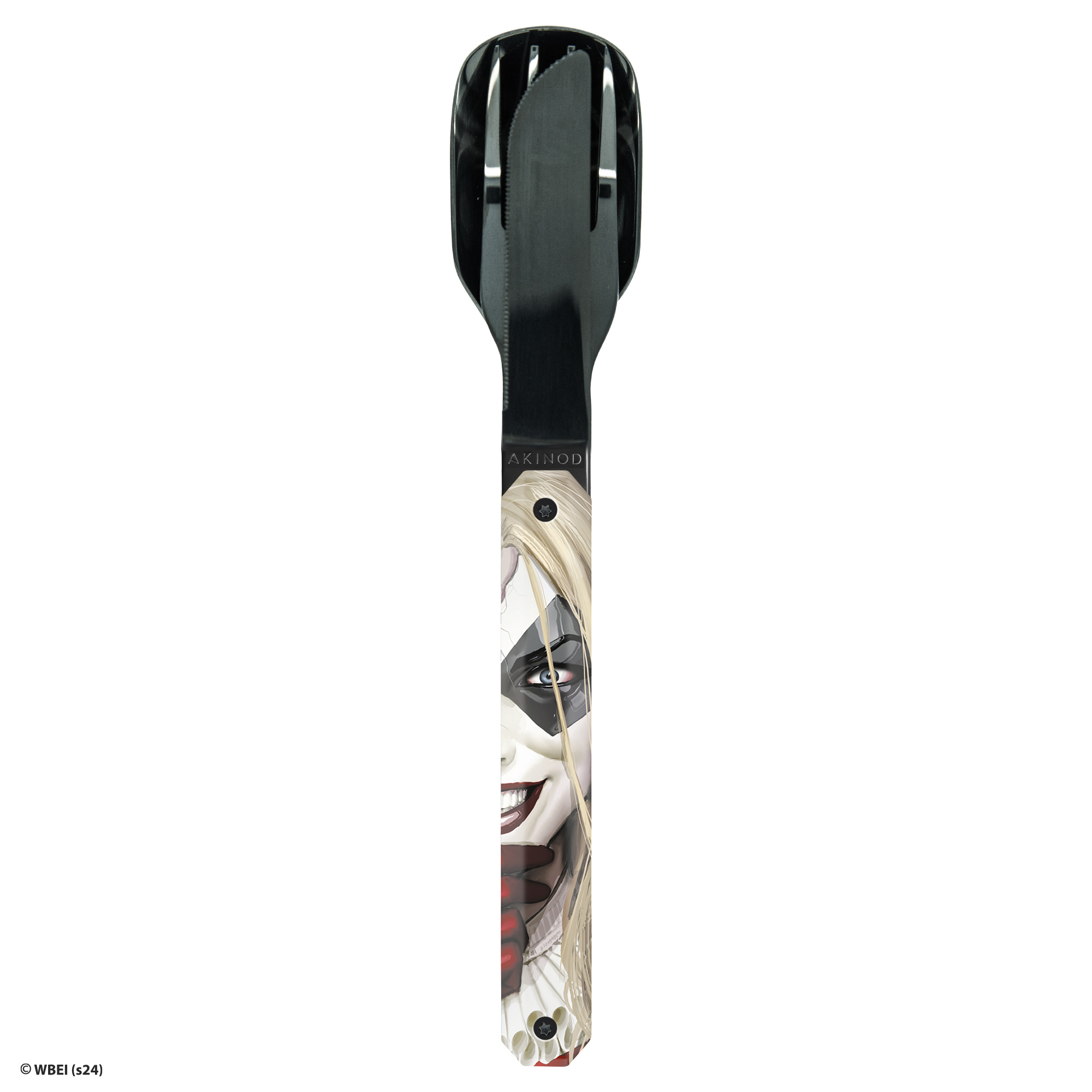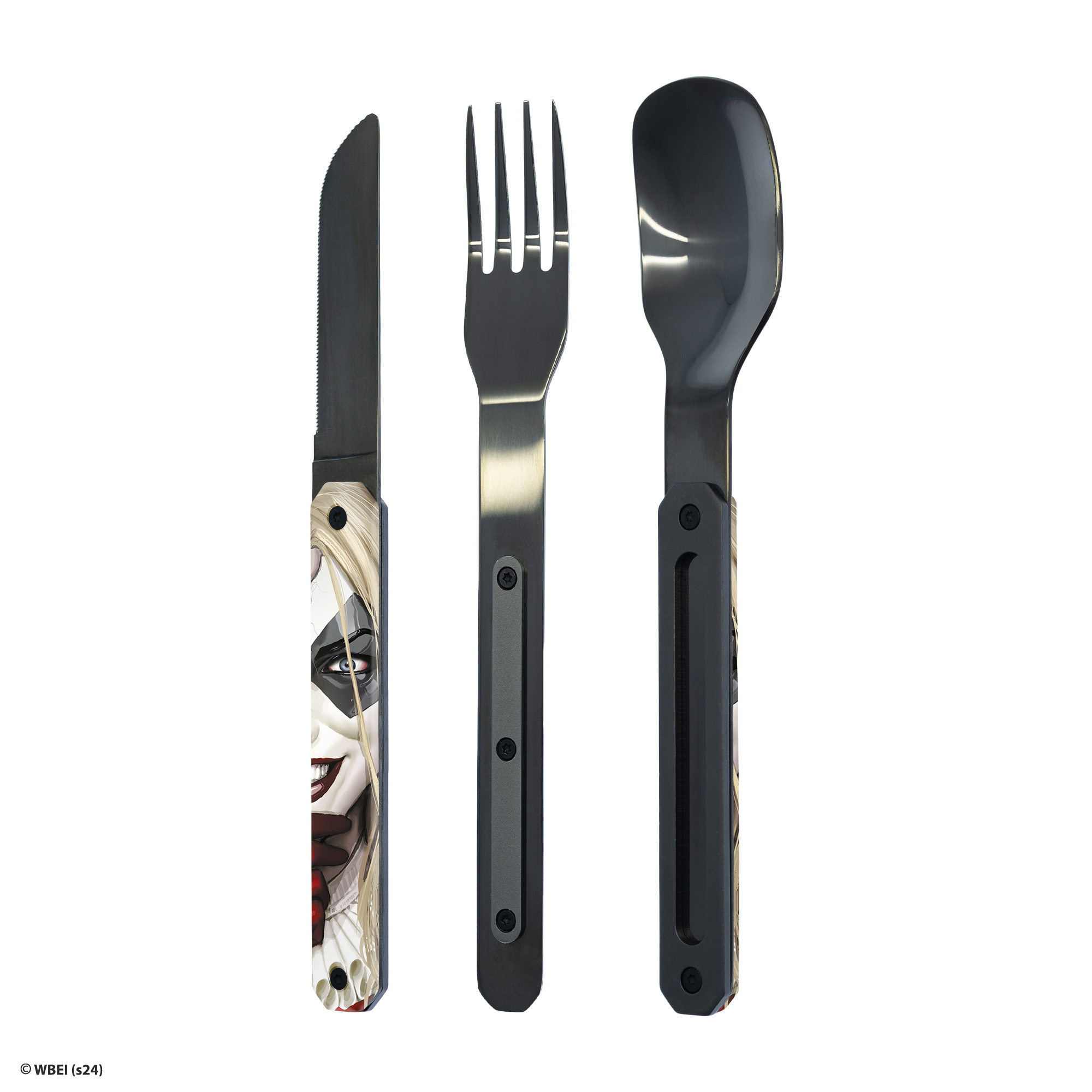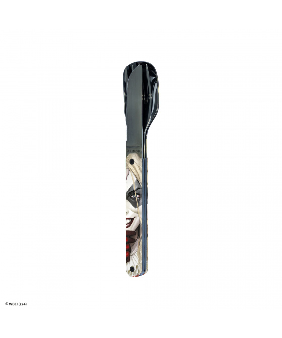 Cestovatelský magnetický příborový set v moderním designu. Rukojeť s motivem Harley Quinn.