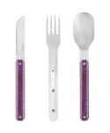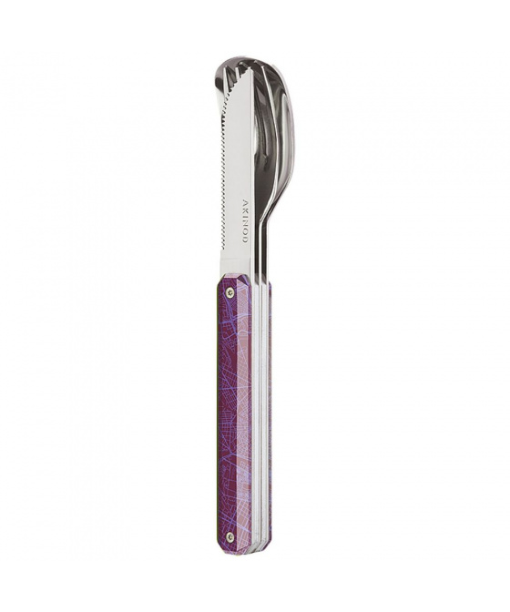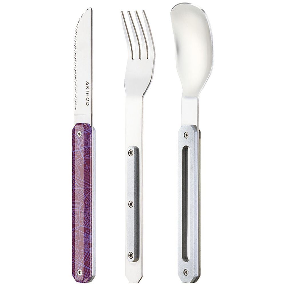 Cestovatelský příborový set v moderním designu s grafikou downtown violet.
