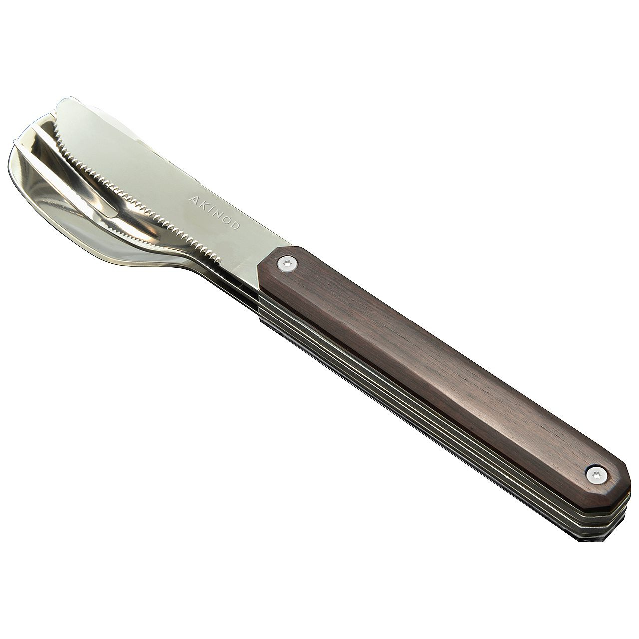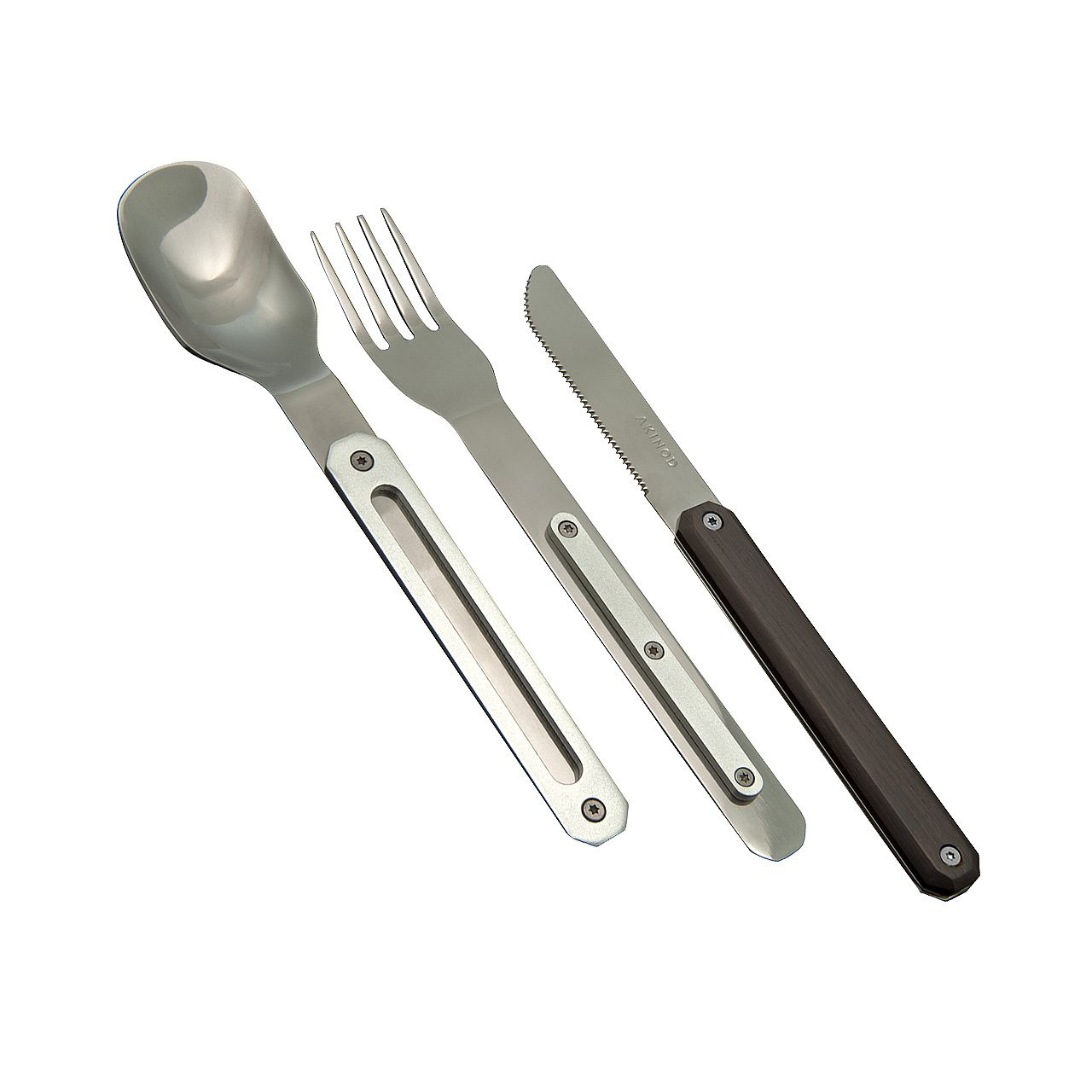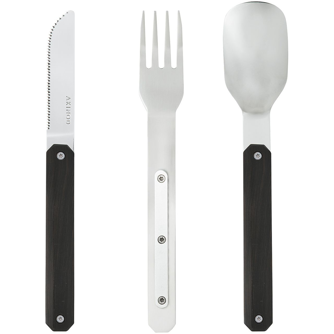 Cestovatelský příborový set v moderním designu s rukojetí z ebenového dřeva.
