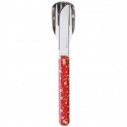 Cestovatelský příborový set v moderním designu s vyobrazením květů devaterníku.