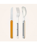 Cestovatelský magnetický příborový set v moderním designu s hliníkovou rukojetí.