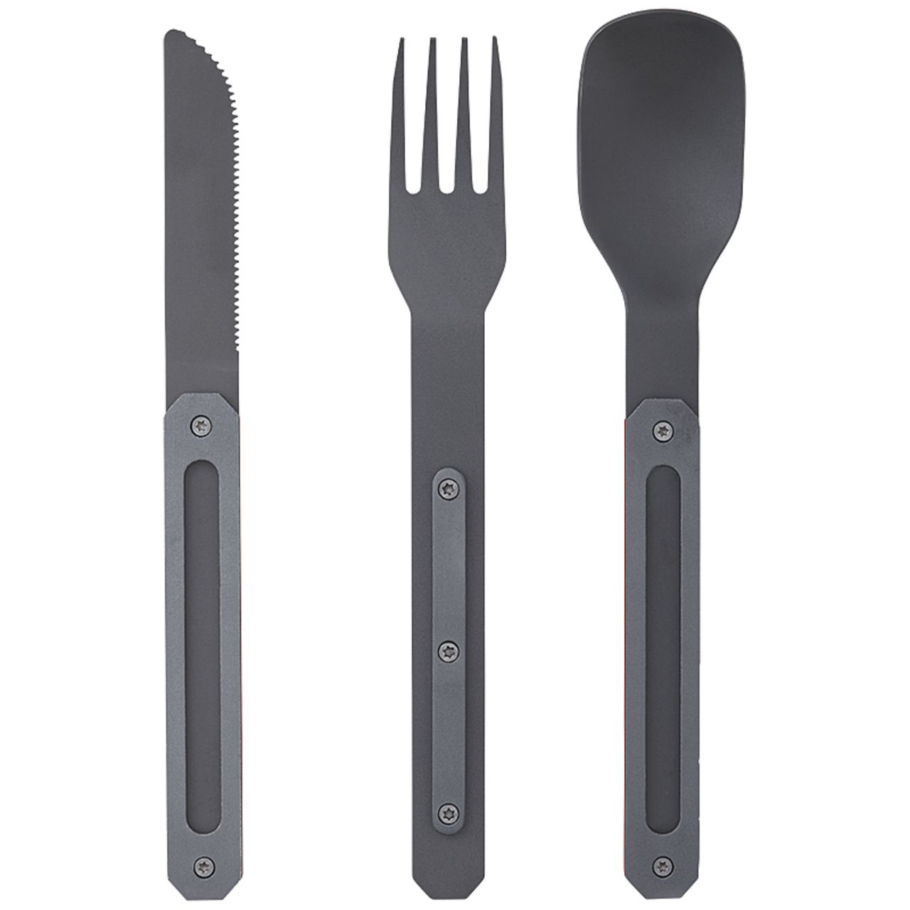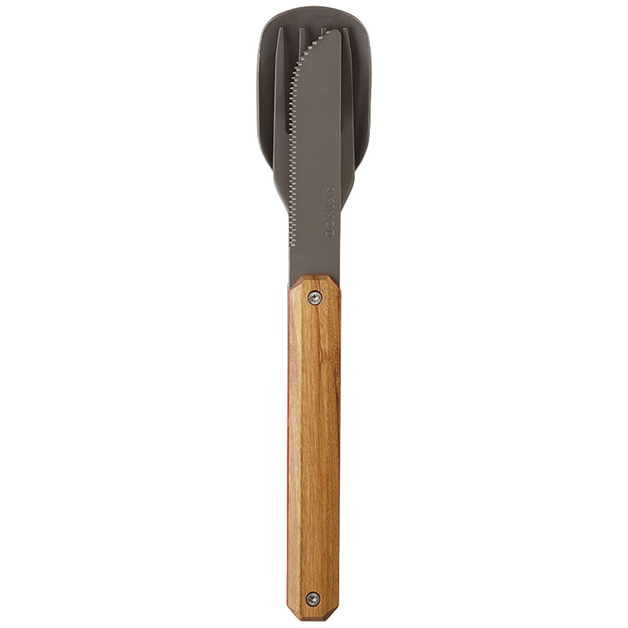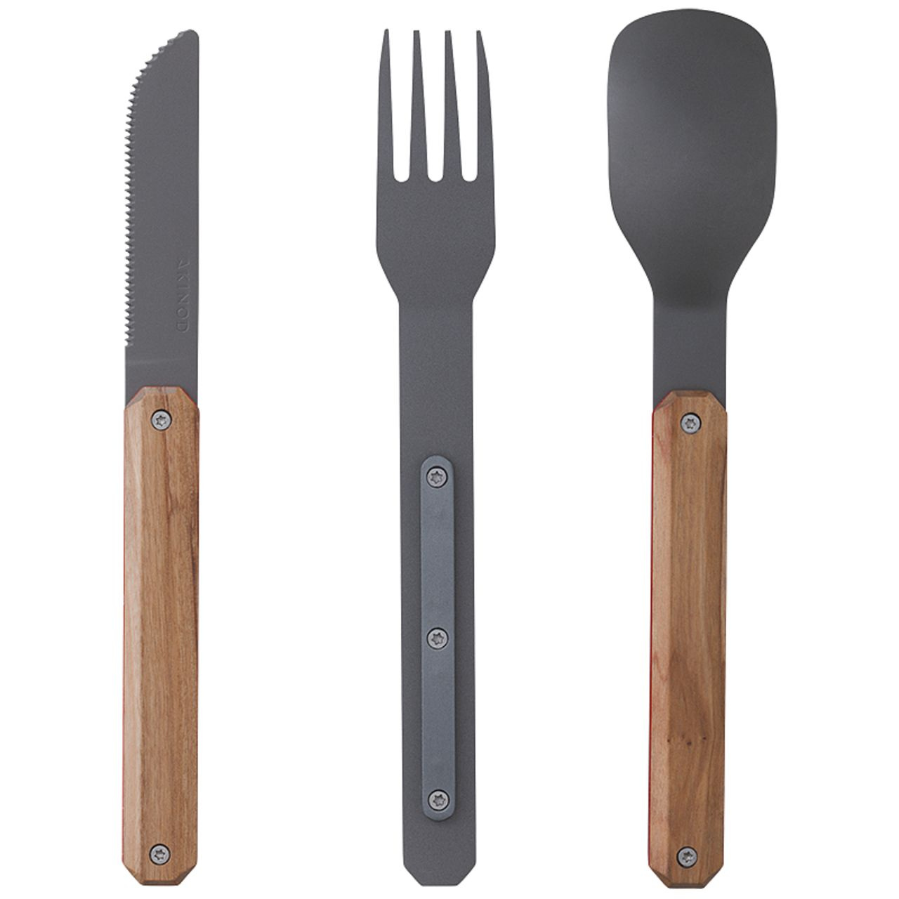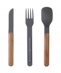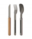 Cestovatelský příborový set v moderním designu s rukojetí z olivového dřeva.