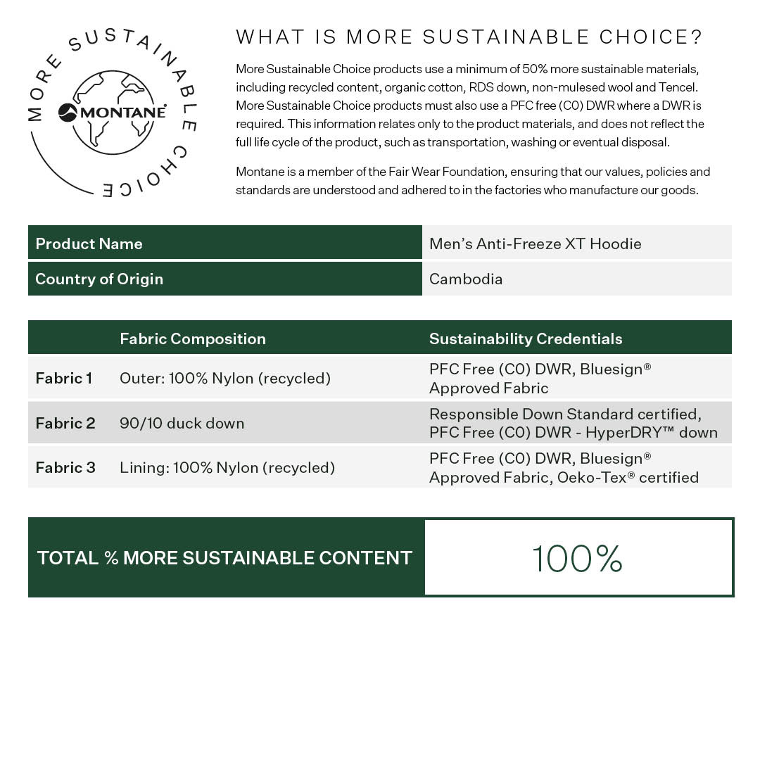 Bunda nabízí výjimečné teplo při minimální hmotnosti, vyrobena je z lehkých recyklovaných materiálů PERTEX QUANTUM ECO s vodoodpudivou úpravou DWR bez PFC šetrnější k životnímu prostředí. Plnivost 750+cuni impregnovaným vysoce kvalitním prachovým peřím s úpravou HyperDry a certifikací RDS s identifikací původu peří.