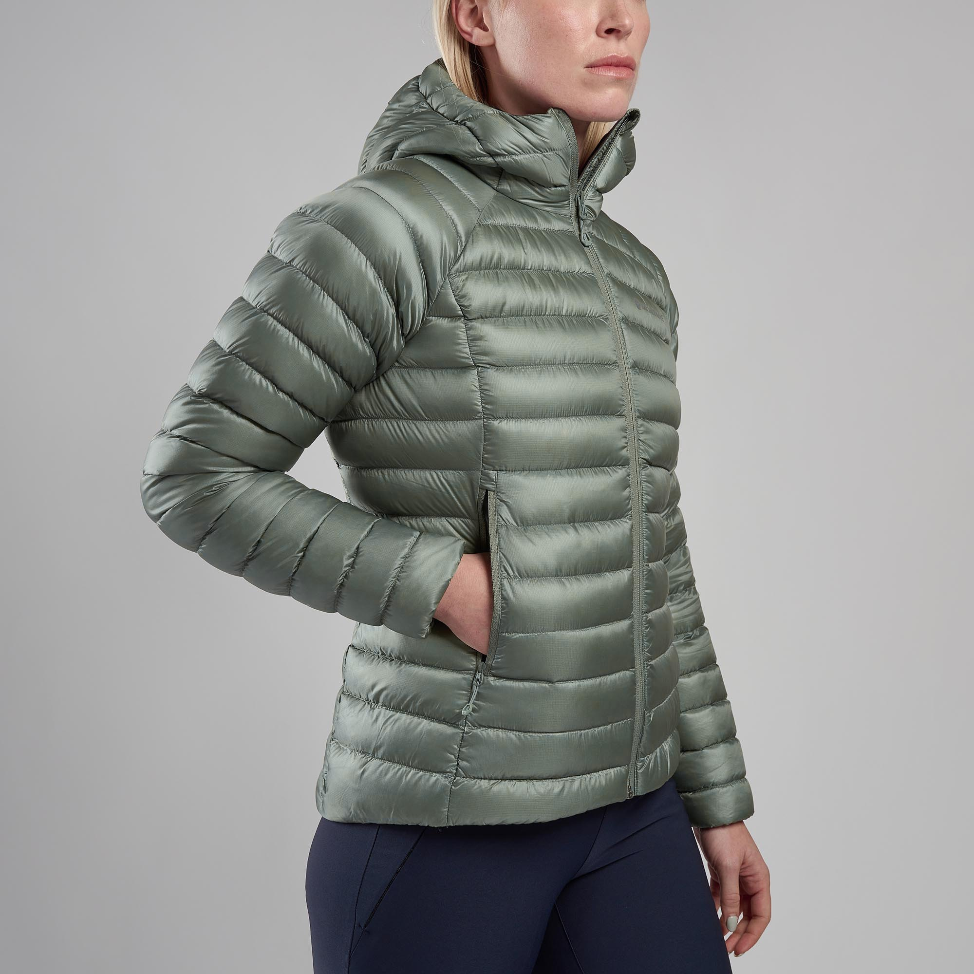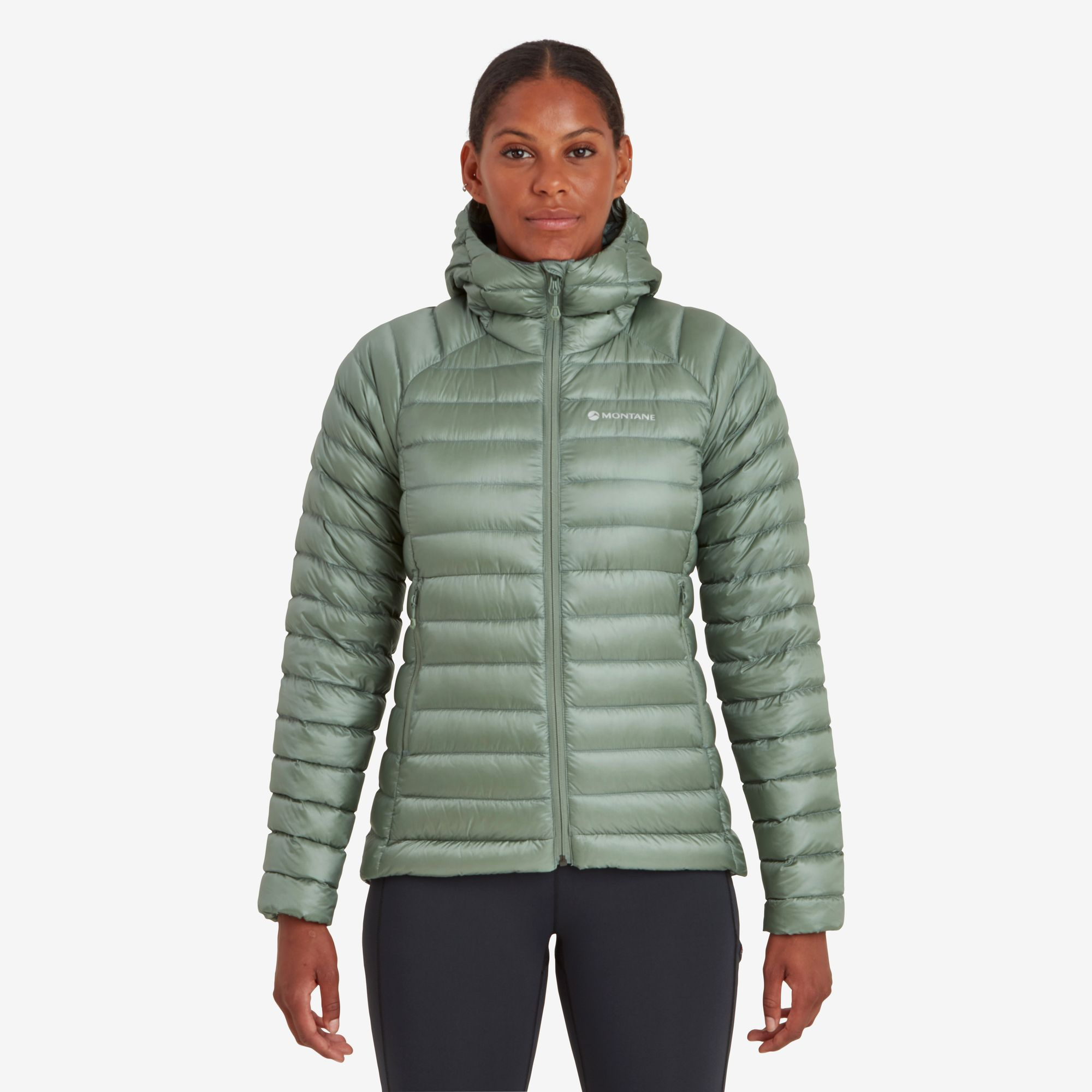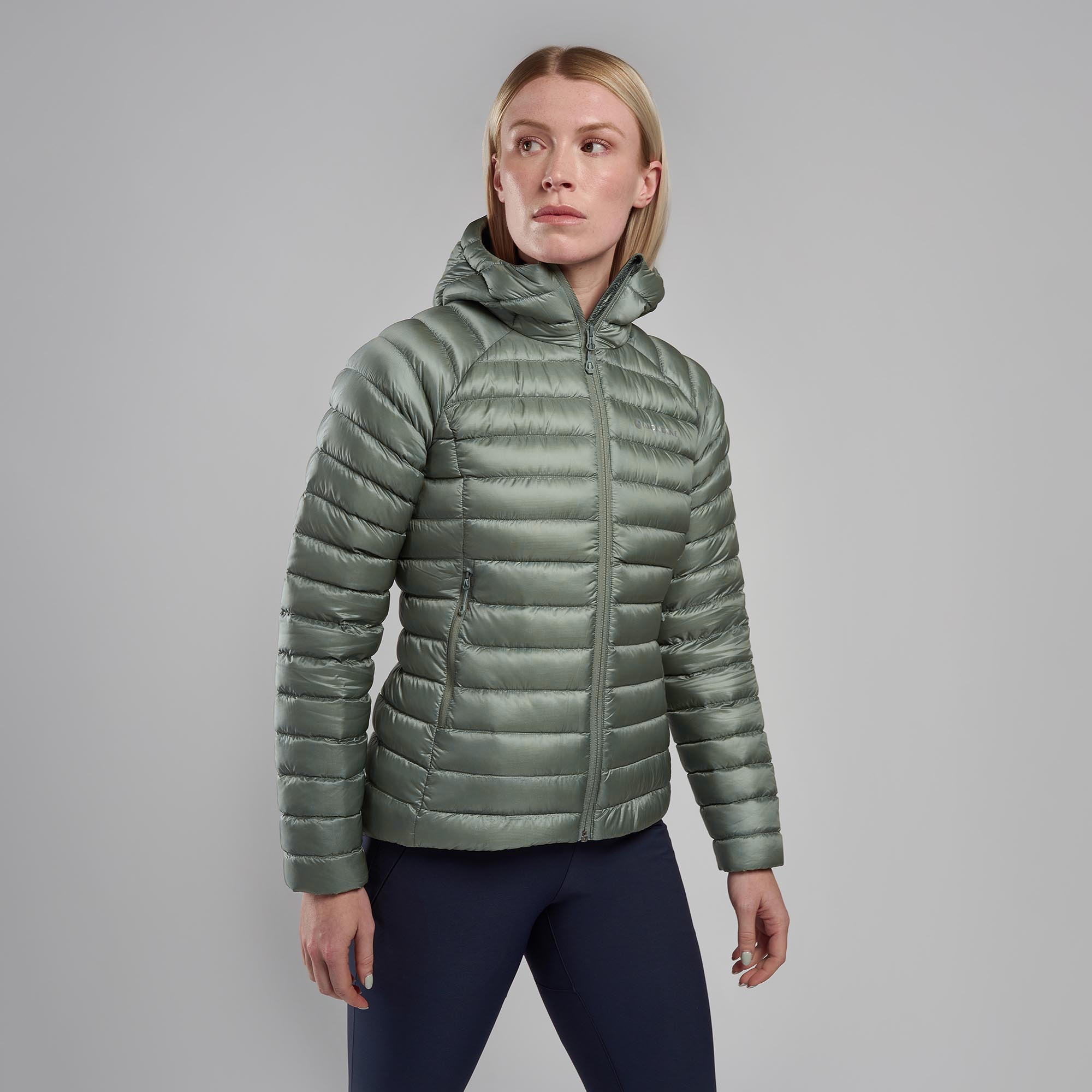 Montane FEM ANTI-FREEZE HOODIE-PALE SAGE-UK10/S dámská bunda šedozelená