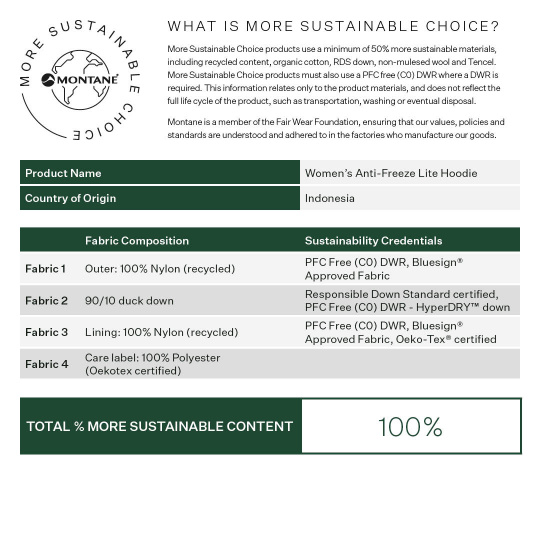 Minimalistická péřová bunda s dokonalou péřovou izolací pro aktivity, kde je rozhodující nízká hmotnost a sbalitelnost. Tato bunda je vyrobena ze 100% recyklovaného svrchního materiálu PERTEX® QUANTUM ECO a plněná prachovým peřím bez obsahu fluorovaných uhlovodíků. Slouží jako elegantní možnost vrstvení při chladných výstupech nebo jako samostatná vrstva izolace.