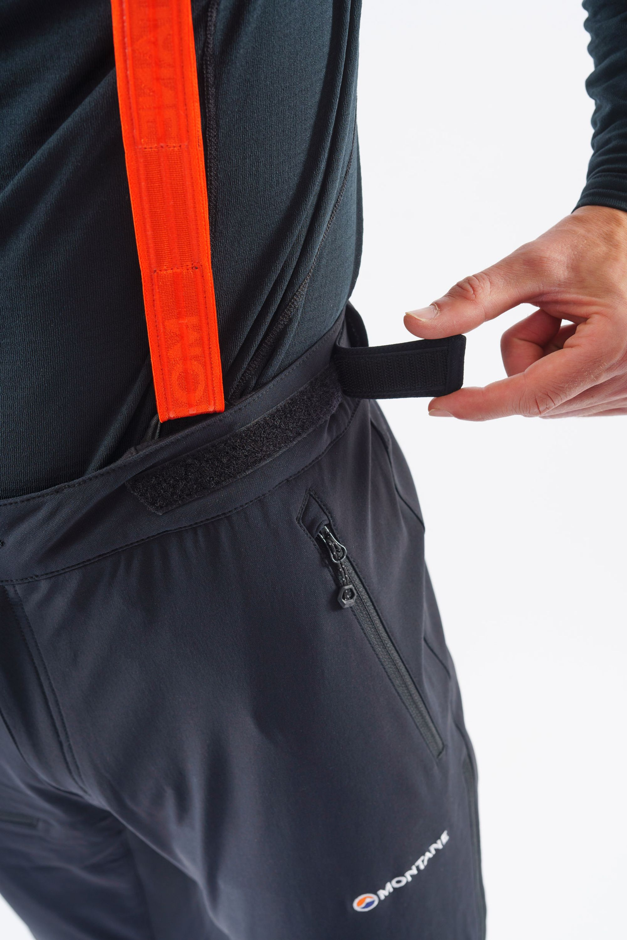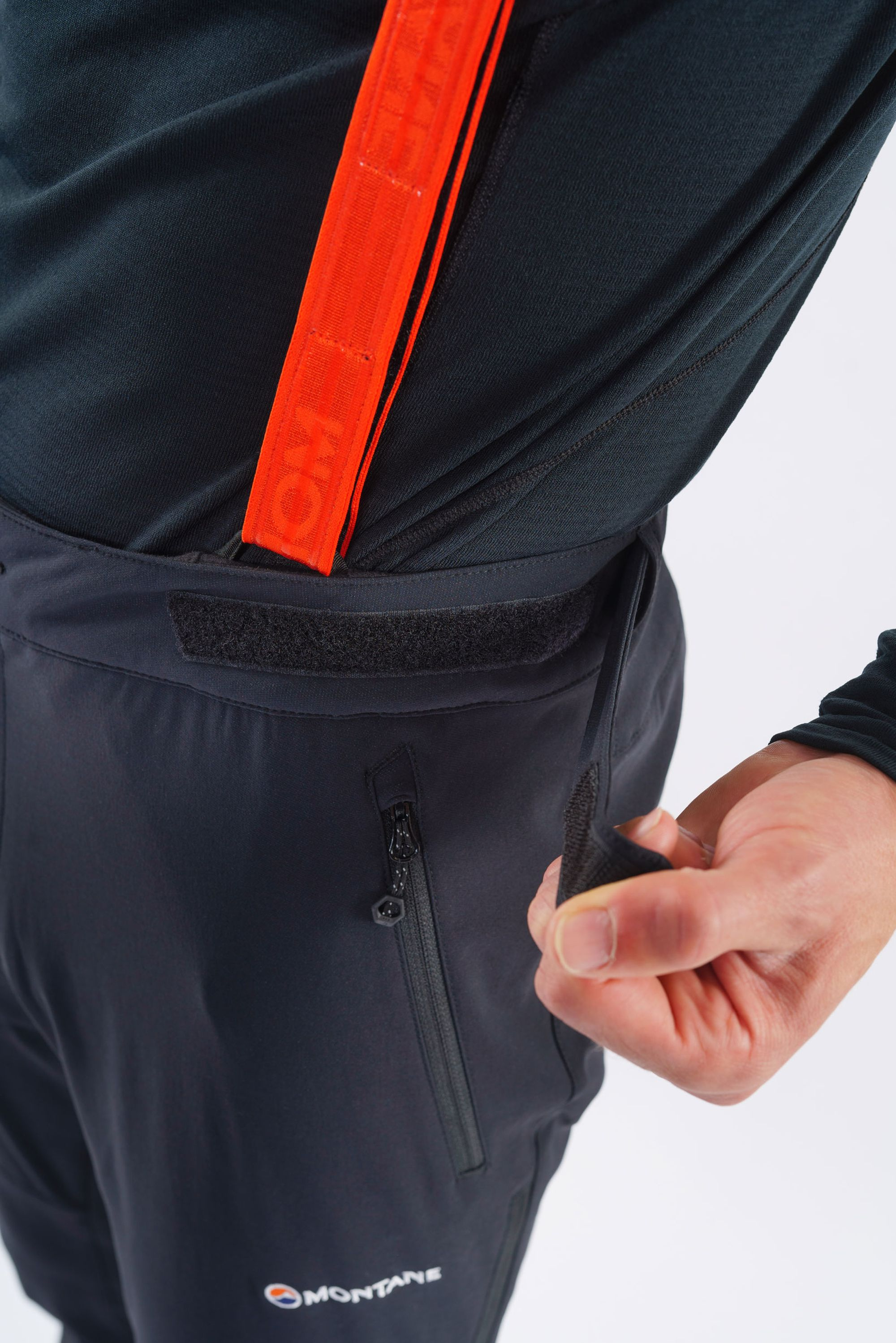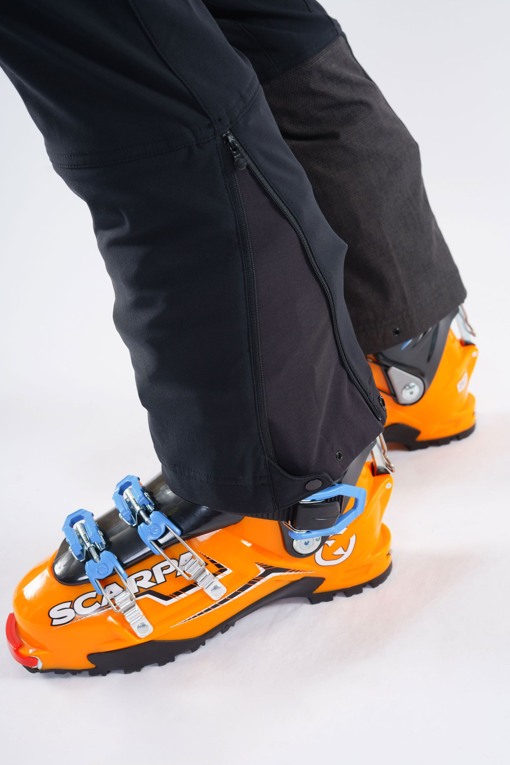 Vnitřní část spodního okraje nohavic je z pevného materiálu SCHOELLER KEPROTEC KEVLAR, sněhové návleky, odvětrávání nohavic, kšandy - ideální technické kalhoty do extrému.