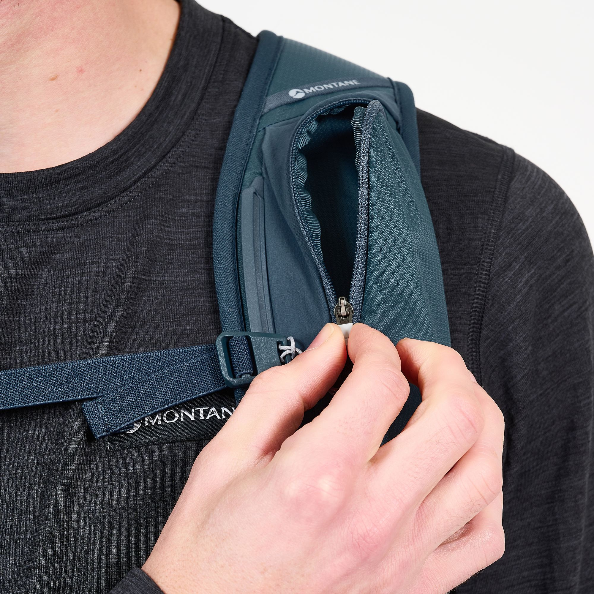 - Kapsy na ramenních popruzích, jedna na zip