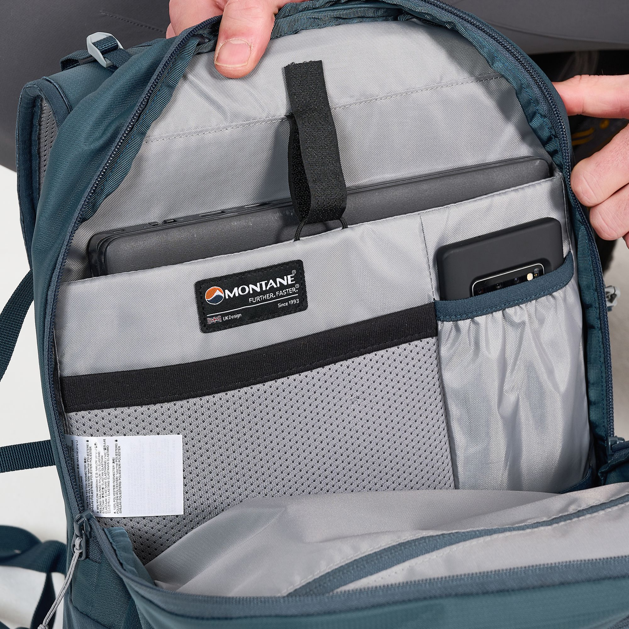 - Polstrovaná kapsa na na notebook (15,6 palce), polstrované kapsy na tablet a telefon s podšívkou proti poškrábání
