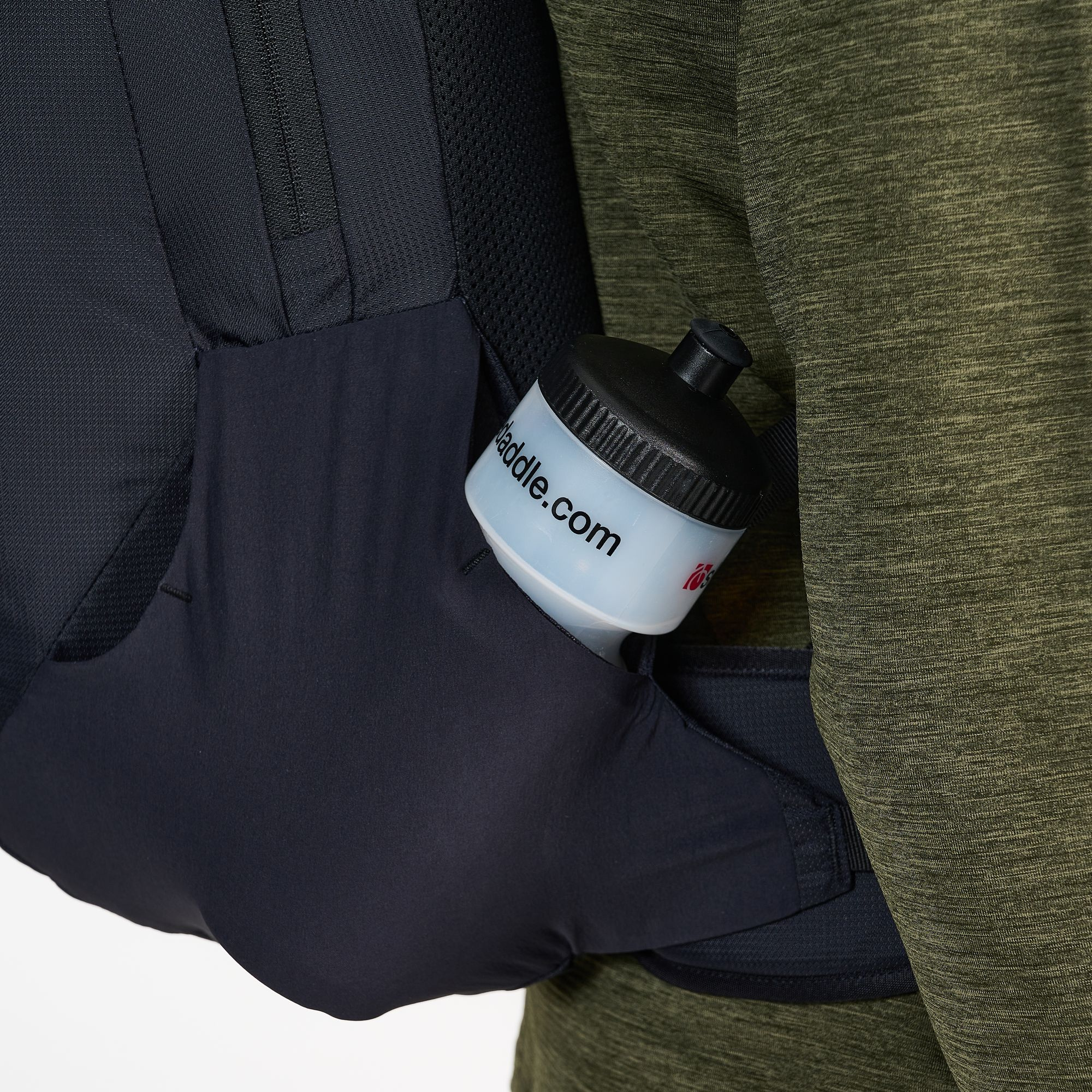 • Boční kapsy napojující se na bederní pás, jedna na zip, s klipem na klíče uvniř, druhá otevřená (např. na pitnou láhev)