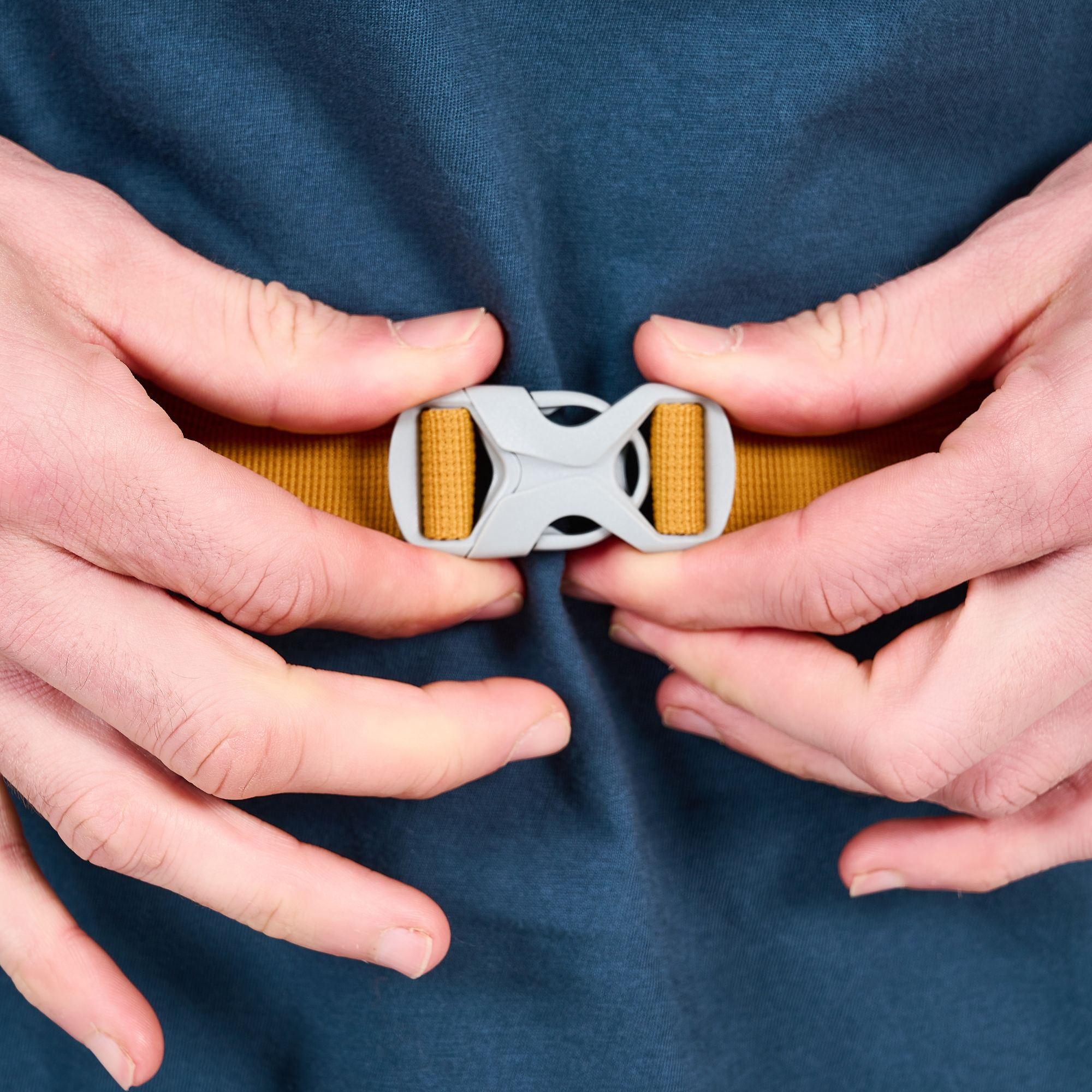 upínání hrudního popruhu Click and Go, pro rychlé a snadné ovládání