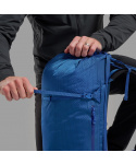 - rolovací horní uzávěr s možností zvětšení objemu pro bezpečné sbalení vybavení s horním kompresním popruhem, bivi otevírání hlavní kapsy s rychlostahováním