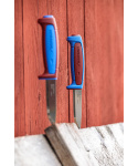 Adaptibilní a velmi ostrý švédský pracovní nůž nejvyšší kvality z generace profesionálních nožů s rozvinutými funkcemi vyrobených v kraji Mora. Limitovaná edice pro rok 2025 v kombinaci barev Dala Red a Siljan Blue Barva Dala Red™ historicky vychází z roku 1912, kdy vznikl nápad natírat rukojeti nožů charakteristickou červenou barvou místo použití drahého mahagonového dřeva. Tvar a provedení slouží efektivně ke snížení únavy a rizika poranění při opakujících se pohybech při používání nože. Čepel je vyrobena ze švédské nerezové oceli válcované za studena a kalené na HRC 56,5. Ostří je odolnější proti opotřebení a zůstává ostrá po dlouhou dobu. Ergonomicky tvarovaná zaoblená rukojeť je vyrobená z kombinace odolného plastu. Záštita zabraňuje sklouznutí ruky a poranění prstů. Polymerové plastové pouzdro orientované doprava. Opora pro palec pro snadnější vytažení nože. Pouzdro je snadno omyvatelné, otvor ve špičce pouzdra usnadňuje odtok. Plastový klip na opasek pro snadné připevnění bez nutnosti opasek rozepnout. Výčnělek na pouzdru nože slouží k upevnění dalších modelů pracovních nožů Morakniv se stejným typem pouzdra a vytvoření ideální kombinace pro vaši práci.
