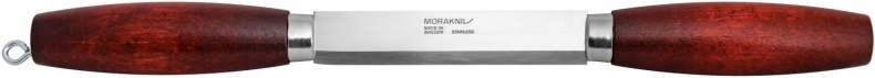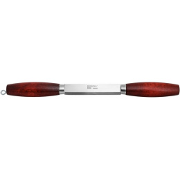 Jednoduchý švédský dvouruční nůž, který je poctou švédské řemeslné tradici a ikonickým symbolem již po více než 100 let. Tento všestranný nůž byl vyvinutý v kraji Mora a je využívaný již několika generacemi řemeslníků a zálesáků. Dvě dřevěné rukojeti z lakovaného březového dřeva nabízejí spolehlivost a příjemný pocit při používání. Rukojeti jsou příčně spojeny ocelovým nožem s ostřím ke spodní straně. Čepel je vyrobena ze švédské nerezové oceli válcované za studena a kalené na HRC 56,5 s ostřím odolnějším proti opotřebení. Poříz je dodnes potřebný nástroj truhlářů, tesařů, bednářů, kolářů, výrobců šindelů a je užíván v průmyslových i domácích dílnách pro úpravu nástrojů. Háček pro zavěšení. Vhodné pro praváky i leváky.Více