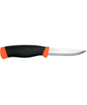 švédský nůž velmi vysoké kvality s typickou skandinávskou čepelí s třívrstvým povlakem všestranný výkonný nástroj pro lovce, zálesáky a všechny outdoorové nadšence vyznávající svobodu pohybu ve volné přírodě nůž je možné využít při batoningu technice řezání nebo štípání dřeva pomocí úderů do hřbetu nože, splňuje maximální požadavky na pevnost úhel ostří 27° nabízí dostatečnou ostrost a odolnost čepel je vyrobena z uhlíkové oceli, která déle drží ostrost, a kalená na HRC 57,5 tvarovaná rukojeť s prolisem je vyrobená z odolného plastu černé barvy rukojeť je potažena vrstvou měkké přilnavé pryže, odolné proti skluzu záštita v oranžové barvě o délce 3 cm zabraňuje sklouznutí ruky a poranění prstů plastové pouzdro oranžové barvy opora pro palec pro snadnější vytažení nože pouzdro je snadno omyvatelné, otvor ve špičce pouzdra usnadňuje odtok plastový klip na opasekVíce