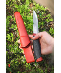 Švédský nůž velmi vysoké kvality s dlouhou životností. Tento všestranný nůž je určený pro stejnou cílovou skupinu jako model Bushcraft a je spojený s uměním přežití a pobytem v přírodě, ale velké uplatnění nalezne i jako pracovní nůž. Tvar a provedení slouží efektivně ke snížení únavy a rizika poranění při opakujících se pohybech při používání nože. Čepel je vyrobena ze švédské nerezové oceli válcované za studena a kalené na HRC 56,5 s ostřím odolnějším proti opotřebení. Tvarovaná rukojeť s prolisem je vyrobená z odolného plastu potaženého vrstvou měkké přilnavé termoplastické pryže, odolné proti skluzu. Záštita o délce 3 cm zabraňuje sklouznutí ruky a poranění prstů. Polymerové plastové pouzdro orientované doprava. Opora pro palec pro snadnější vytažení nože. Pouzdro je snadno omyvatelné, otvor ve špičce pouzdra usnadňuje odtok. Plastový klip na opasek. Od podzimu 2023 je barva Dala Red™ oficiální ochrannou známkou chráněnou Evropskou unií.Více