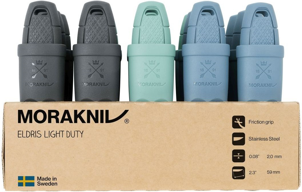 Sada 15 švédských kapesních nožů, které využijete na každé výpravě, přičemž vůbec nezáleží na jejich délce a náročnosti - jsou vždy připravené k okamžitému použití. S jejich pomocí upravíte stromy na zahradě, upravíte květinové záhony, pomohou vám při domácích pracích, v kuchyni, nebo je použijete na nenáročné vyřezávání. Překvapí vás svou silou, odolností a všestranností, díky flexibilitě je můžete nosit v kapse nebo jako součást výbavy. Na každou část nože od rukojeti až po špičku čepele jsou použity jen ty nejlepší materiály. Vzor rukojeti rhombus je tradiční vzor, jehož variace je možné nalézt na mnoha nožích Mora, a poskytuje pohodlný a pevný úchyt. Ostří nože je broušené ve skandinávském stylu, díky němuž čepel zůstává ostrá po dlouhou dobu. Čepel nože má polomatnou úpravu oblíbenou mezi outdoorovými nadšenci. Čepel nože vyrobena z vysoce kvalitní optimálně upravené švédské oceli 12C27, je 2 mm široká a 59 mm dlouhá. V horní části rukojeti se nalézá závěsný otvor pro uchycení nože pomocí karabiny, provázku nebo paracordu podle druhu využití. Na výrobu rukojeti je použit speciální pevný polyamid, který v porovnání s jinými polymery poskytuje extra výdrž při námaze rukojeti. Symetrická rukojeť umožňuje flexibilní použití a její design zároveň nabízí pevné uchopení nože. Nůž lze zasunout do pouzdra oběma směry čepele. V rukojeti nože je kosočtvercová prohlubeň Click Lock, díky které je nůž pevně zabezpečen v pouzdře před nežádoucím uvolněním. Hrana nože je vybroušena tak, aby perfektně fungovala v kombinaci s křesadlem, ostří nože tak nemusíte použít k rozdělání ohně a čepel se neztupí. Tradiční plastové pouzdro se dvěma odtokovými otvory umožňuje snadné čištění a údržbu nože. Polypropylen použitý při výrobě pouzdra zajišťuje jeho pevnost a excelentní ochranu nože. Tvar pouzdra je inspirován designem pouzder vyráběných na začátku devadesátých let a vypadá téměř stejně jako u klasických edicí nožů. Symetrie pouzdra má zásadní význam, protože umožňuje uložení nože bez ohledu na směr ostří čepele a je ideální pro praváky i leváky. Dva zkřížené šípy s korunou jsou znakem provincie Dalarna. Sada obsahuje: 5x model 13897 Eldris LightDuty (S) Dusty Blue 5x model 13898 Eldris LightDuty (S) Mint Green 5x model 13899 Eldris LightDuty (S) Dark Grey
