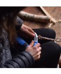 švédský kapesní nůž, který využijete na každé výpravě, přičemž vůbec nezáleží na její délce a náročnosti je vždy připraven k okamžitému použití na celodenním pochodu si s jeho pomocí vyrobíte třísky, rozděláte oheň nebo jej použijete na nenáročné vyřezávání na vícedenních výpravách nebo na lovu vás překvapí svou silou, odolností a všestranností Eldris vám dovolí bezpečně stáhnout zvěř z kůže a je snadno dostupný jak v kapse, tak v např. v pouzdru na noze verze Neck Knife Kit je dodávána se sadou pro zavěšení na krk, díky které objevíte plný potenciál tohoto nože pověste si Eldris na krk s pomocí víceúčelového paracordu a díky koženému poutku s drukem zabráníte nechtěnému uvolnění a ztrátě nože tento přírodní materiál je nejlepší volbou, pokud se jedná o časté užívání nože a drobných namáhaných částí, které jsou neustále opakovaně používány v kombinaci s malým škrtadlem si rozděláte oheň nebo zapálíte plynovou kartuši pro přípravu jídla na každou část nože od rukojeti až po špičku čepele jsou použity jen ty nejlepší materiály vzor rukojeti rhombus je tradiční vzor, jehož variace je možné nalézt na mnoha nožích Mora, a poskytuje pohodlný a pevný úchyt ostří nože je broušené ve skandinávském stylu, díky němuž čepel zůstává ostrá po dlouhou dobu čepel nože má polomatnou úpravu oblíbenou mezi outdoorovými nadšenci čepel nože vyrobena z vysoce kvalitní optimálně upravené švédské oceli s HRC 56,5, je 2 mm široká a 59 mm dlouhá v horní části rukojeti se nalézá závěsný otvor pro uchycení nože pomocí karabiny, provázku nebo paracordu podle druhu využití na výrobu rukojeti je použit speciální pevný polyamid, který v porovnání s jinými polymery poskytuje extra výdrž při námaze rukojeti symetrická rukojeť umožňuje flexibilní použití a její design zároveň nabízí pevné uchopení nože nůž lze zasunout do pouzdra oběma směry čepele v rukojeti nože je kosočtvercová prohlubeň Click Lock, díky ketré je nůž pevně zabezpečen v pouzdře před nežádoucím uvolněním hrana nože je vybroušena tak, aby perfektně fungovala v kombinaci s křesadlem, ostří nože tak nemusíte použít k rozdělání ohně a čepel se neztupí tradiční plastové pouzdro se dvěma odtokovými otvory umožňuje snadné čištění a údržbu nože polyproplen použitý při výrobě pouzdra zajišťuje jeho pevnost a excelentní ochranu nože tvar pouzdra je inspirován designem pouzder vyráběných na začátku devadesátých let a vypadá téměř stejně jako u klasických edicí nožů symetrie pouzdra má zásadní význam, protože umožňuje uložení nože bez ohledu na směr ostří čepele a je ideální pro praváky i leváky dva zkřížené šípy s korunou jsou znakem provincie Dalarna