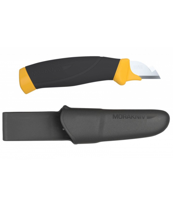 -velmi ostrý švédský pracovní nůž nejvyšší kvality s čepelí určenou pro elektrikáře, vhodnou na odstraňování izolace z kabelů -tvar a provedení slouží efektivně ke snížení únavy a rizika poranění při opakujících se pohybech při používání nože -čepel je vyrobena ze švédské nerezové oceli válcované za studena a kalené na HRC 56,5 -ostří je odolnější proti opotřebení -zaoblená ergonomicky tvarovaná rukojeť s prolisem je vyrobená z odolného plastu nenápadné šedé barvy -rukojeť je potažena vrstvou měkké přilnavé pryže, odolné proti skluzu -záštita ve žluté barvě zabraňuje sklouznutí ruky a poranění prstů -plastové pouzdro tmavě šedé barvy -opora pro palec pro snadnější vytažení nože -pouzdro je snadno omyvatelné, otvor ve špičce pouzdra usnadňuje odtok -plastový klip na opasek