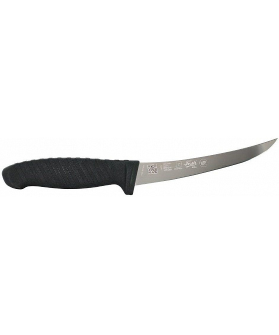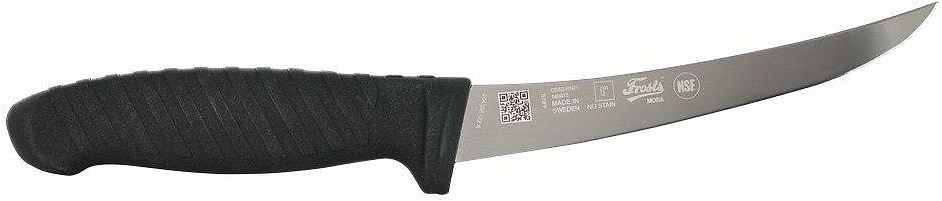 Vysoce kvalitní vykošťovací nůž FROST® RMH od Morakniv vyrobený ve Švédsku jako součást širokého sortimentu nožů určených ke zpracování potravin. Zakřivená tuhá leštěná čepel o délce 158 mm je vyrobená z pečlivě vybrané vysoce kvalitní švédské nerezové oceli, která je z 80% recyklovaná. Ocel je během procesu výroby běžící na 100% zelené elektřině průmyslově vytvrzená, důkladně nabroušená moderními robotickými stroji a vyznačuje se zvýšenou odolností proti korozi. Po vyjmutí z obalu je nůž okamžitě připravený k použití, není třeba ho ostřit. Černá ergonomicky tvarovaná rukojeť ze středně tvrdého polyamidu se speciálně navrženým žebrovaným vzorem odolává vlhkosti a zajišťuje optimální tření. Umožňuje rychlou a bezpečnou změnu úchopu s maximální pevností a bezproblémové spojení čepele a jádra rukojeti. Rukojeť je vybavená záštitou zabraňující sklouznutí prstů na čepel a nabízí mimořádnou tepelnou odolnost. Individuální QR kód na každé čepeli pro skenování a sledování pohybu nože. Shromažďováním a inteligentním propojením všech dat s jedním konkrétním nožem můžete analyzovat používání v průběhu času a výkon zaměstnanců a okamžitě detekovat možné závady. Schváleno k použití mezinárodní organizací NSF. Označení na čepeli: sériové číslo QR kód pro sledování tuhost čepele (STIFF-tuhá, MFLEX-polotuhá, FLEX-flexibilní, XFLEX-extra flexibilní) identifikační kód výrobku délka čepele v palcích logo výrobce označení NSF Organizace NSF (National Sanitation Foundation) byla založena v USA v roce 1944 a je neziskovou organizací na podporu obecného zdraví a životního prostředí. NSF testuje a certifikuje výrobky i systémy a zajišťuje vzdělávání a řízení rizik. Je přední světovou organizací v oblasti certifikace produktů se zaměřením na bezpečnost potravin, vody, vzduchu v interiéru a na životní prostředí. NSF provádí neohlášené testy, ve kterých je před udělením certifikace hodnocen celý řetězec vývoje produktu.Více
