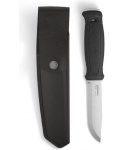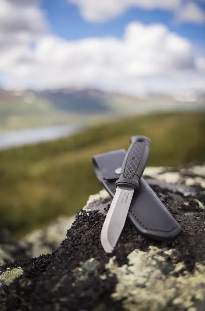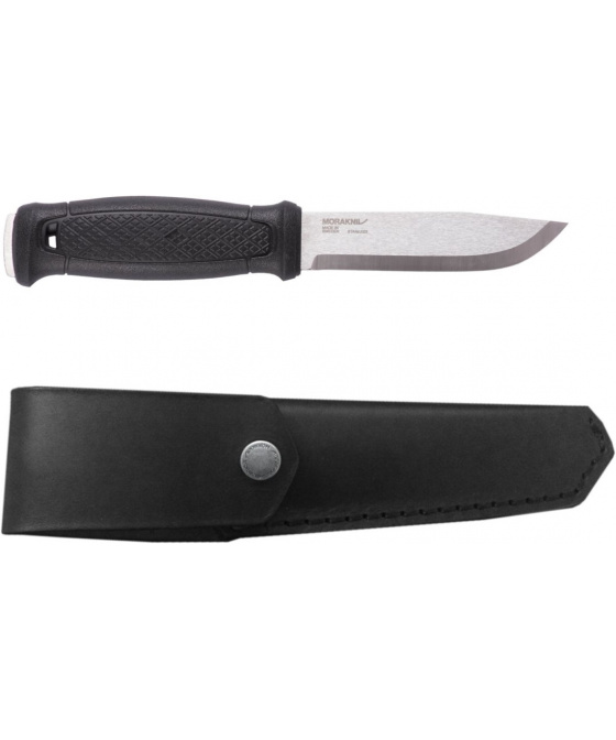 Nůž navržený tak, aby uspokojil přání nejvěrnějších zákazníků, stejně jako očekávání milovníků nožů, kteří ještě nepronikli do světa Morakniv. Fulltang model je nejrobustnější nůž s originálním designem Morakniv, který byl do této chvíle vytvořen, a překonává ty největší výzvy, kterým lze čelit. Na každou část nože od rukojeti až po špičku čepele jsou použity jen ty nejlepší materiály. Stejně jako všechny ostatní modely je i Garberg vyráběn ve Švédsku v továrně Mora. Garberg odhalí zcela novou úroveň a stává se jedním z největších fenoménů Morakniv. Mohutný vzhled je způsobem, jak vyjádřit poklonu nejrobustnějšímu noži, jaký byl u Mora vyvinut. Vzor rukojeti rhombus je tradiční vzor, jehož variace je možné nalézt na mnoha nožích Mora, a poskytuje pohodlný a pevný úchyt. Kromě praktického využití tento vzor skládá i poklonu regionu Mora a jeho historii. Ostří nože je broušené ve skandinávském stylu, díky němuž čepel zůstává ostrá po dlouhou dobu. Čepel nože má polomatnou úpravu oblíbenou mezi outdoorovými nadšenci. Čepel nože vyrobena z vysoce kvalitní optimálně upravené švédské nerezové oceli a je 109 mm dlouhá. 3,2 mm silná fulltang čepel prochází celým nožem až do rukojeti a tím zajišťuje extra pevnost a výdrž nože. V horní části rukojeti se nalézá závěsný otvor pro uchycení nože pomocí karabiny, provázku nebo paracordu podle druhu využití. Na výrobu rukojeti je použit speciální extra pevný polyamid, který v porovnání s jinými polymery poskytuje extra výdrž při námaze rukojeti. Symetrická rukojeť umožňuje flexibilní použití a její design zároveň nabízí pevné uchopení nože. Nůž lze zasunout do pouzdra oběma směry čepele. Hrana nože je vybroušena tak, aby perfektně fungovala v kombinaci s křesadlem, ostří nože tak nemusíte použít k rozdělání ohně a čepel se neztupí. Tato exkluzivní verze je dodávána v novém unikátním pouzdru z černé kůže prémiové kvality o tloušťce 3 mm. Tento přírodní materiál je asi nejlepší volbou pro pouzdro, pokud se jedná o časté používání nože. Kožené pouzdro bude vypadat stále skvěle i po náročném dlouhodobém používání. Na opačné straně pouzdra je robustní poutko na opasek vyrobené ze stejně kvalitní kůže jako zbytek pouzdra. Pouzdro je zároveň pevným a velkým krytem na nůž, jehož design nabízí mnoho využití. Zabezpečí, že nůž zůstane pevně usazený na svém místě a je snadno dostupný, i když nosíte rukavice. Ve vážných situacích poskytuje jistotu, že nedojde ke ztrátě nože a zároveň je možné nůž použít během několika vteřin. K zajištění bezpečného nošení a prevence před ztrátou je toto pouzdro ideálním řešením.