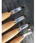 dvoubřitý řezbářský nůž ze světoznámé švédské produkce Frost v oblasti Mora používaný při výrobě švédského národního symbolu koně Dala přírodní dřevěná rukojeť z břízy poskytuje pocit spolehlivosti při používání čepel je vyrobena ze švédské nerezové oceli válcované za studena a kalené na HRC 56,5, ostří je odolnější proti opotřebení vnitřní rádius 20 - 25 mm ochranné kožené pouzdro s uzavíráním pomocí jednoduchého klasického druku ochrání vás i váš nůž pouzdro v přírodní barvě je vyrobeno ze švédské usně činěné zeleninou pouzdro chrání ostrou čepel nože a mělo by být na nůž nasazeno vždy, když se nepoužívá minimalizuje se riziko poranění pořezáním, ale především se zachovává ostrost čepeleVíce