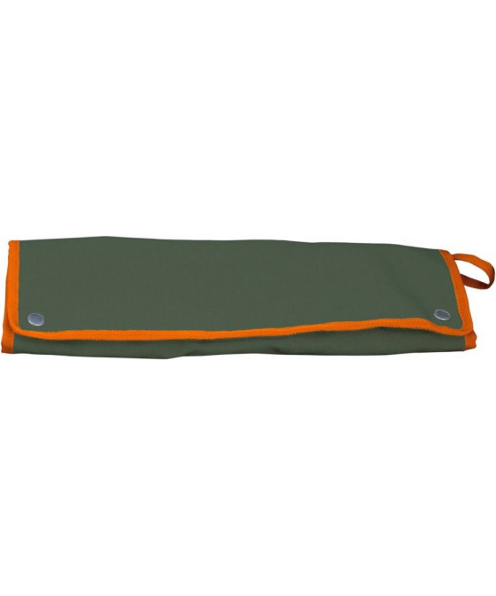 Perfektní pouzdro na nože v barvách inspirovaných lovem pro bezpečné uložení a přepravu nožů a příslušenství. Šest elastických poutek udrží nástroje pevně na místě. Uzavírání na druky. Praktické poutko pro přenášení nebo zavěšení. Pouzdro je vyrobené z odolného recyklovaného polyesteru. Ochranná impregnace vnějšího povrchu pro snadnější čištění. Certifikováno OEKO-TEX® a Bluesign®. Pouzdro se dodává bez nožů.