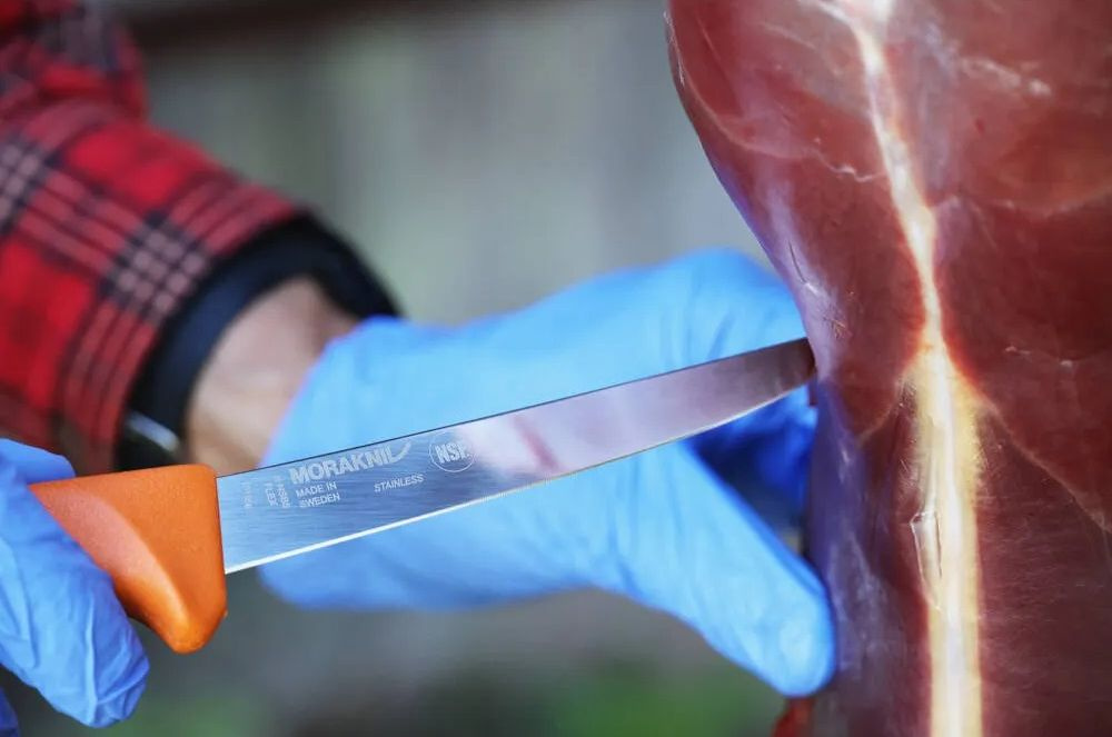 Vykosťovací švédský kuchyňský nůž s vysokou úrovní kvality v barvách inspirovaných lovem. Konstrukce čepele a rukojeti je ideální pro bezpečnou a efektivní práci za různých povětrnostních podmínek při lovu po celý rok. Úzká flexibilní rovná čepel o délce 134 mm a tloušťce 1.76 mm poskytuje pevnost a stabilitu při každém řezu. Čepel je vyrobená ze švédské nerezové oceli nabízející vynikající přesnost a minimální zkažení masa. Ergonomicky tvarovaná rukojeť z TPE s chráničem prstů a povrchovou leptanou strukturou zajišťuje protiskluzovost. Polymerové pouzdro v olivově zelené barvě s praktickými otvory orientované doprava usnadňuje odtok a velmi snadno se oplachuje. Nůž spolehlivě drží v pouzdru díky systému zámku. Pouzdro je vybavené otvorem pro zavěšení nebo upevnění šňůrky a praktickým držadlem pro přenášení na konci pouzdra.