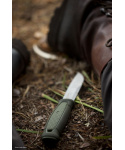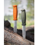 nůž vycházející z dlouholeté tradice výroby nožů, které jsou skvělým partnerem pro pobyt a přežití v divočině, ať už chcete naštípat dřevo, rozdělat oheň nebo stáhnout zvěř z kůže vždy budete připraveni na výzvy, které vám příroda nachystá na každou část nože od rukojeti až po špičku čepele jsou použity jen ty nejlepší materiály vzor rukojeti rhombus je tradiční vzor, jehož variace je možné nalézt na mnoha nožích Mora, a poskytuje pohodlný a pevný úchyt ostří nože je broušené ve skandinávském stylu, díky němuž čepel zůstává ostrá po dlouhou dobu čepel nože má polomatnou úpravu oblíbenou mezi outdoorovými nadšenci čepel nože vyrobena z vysoce kvalitní optimálně upravené švédské nerezové oceli, je 2,5 mm široká a 109 mm dlouhá v horní části rukojeti se nalézá závěsný otvor pro uchycení nože pomocí karabiny, provázku nebo paracordu podle druhu využití na výrobu rukojeti je použit speciální extra pevný polyamid, který v porovnání s jinými polymery poskytuje extra výdrž při námaze rukojeti symetrická rukojeť umožňuje flexibilní použití a její design zároveň nabízí pevné uchopení nože nůž lze zasunout do pouzdra oběma směry čepele hrana nože je vybroušena tak, aby perfektně fungovala v kombinaci s křesadlem, ostří nože tak nemusíte použít k rozdělání ohně a čepel se neztupí tradiční plastové olivové pouzdro se dvěma odtokovými otvory umožňuje snadné čištění a údržbu nože součástí nože je odnímatelná plastová obruba kolem pouzdra s koženým poutkem pro připevnění k opasku poutko na opasek lze oddělit a následně zase přidělat k samotnému pouzdru useň jako přírodní materiál je nejlepší volbou, pokud se jedná o časté užívání nože a drobných namáhaných částí, které jsou neustále opakovaně používány polypropylen použitý při výrobě pouzdra zajišťuje jeho pevnost a excelentní ochranu nože tvar pouzdra je ispirován designem pouzder vyráběných na začátku devadesátých let a vypadá téměř stejně jako u klasických edicí nožů symetrie pouzdra má zásadní význam, protože umožňuje uložení nože bez ohledu na směr ostří čepele a je ideální pro praváky i leváky dva zkřížené šípy s korunou jsou znakem provincie Dalarna
